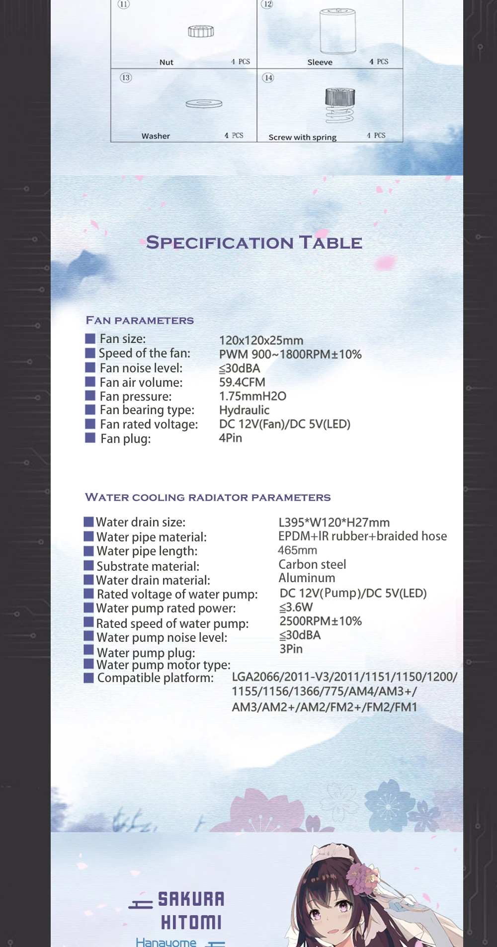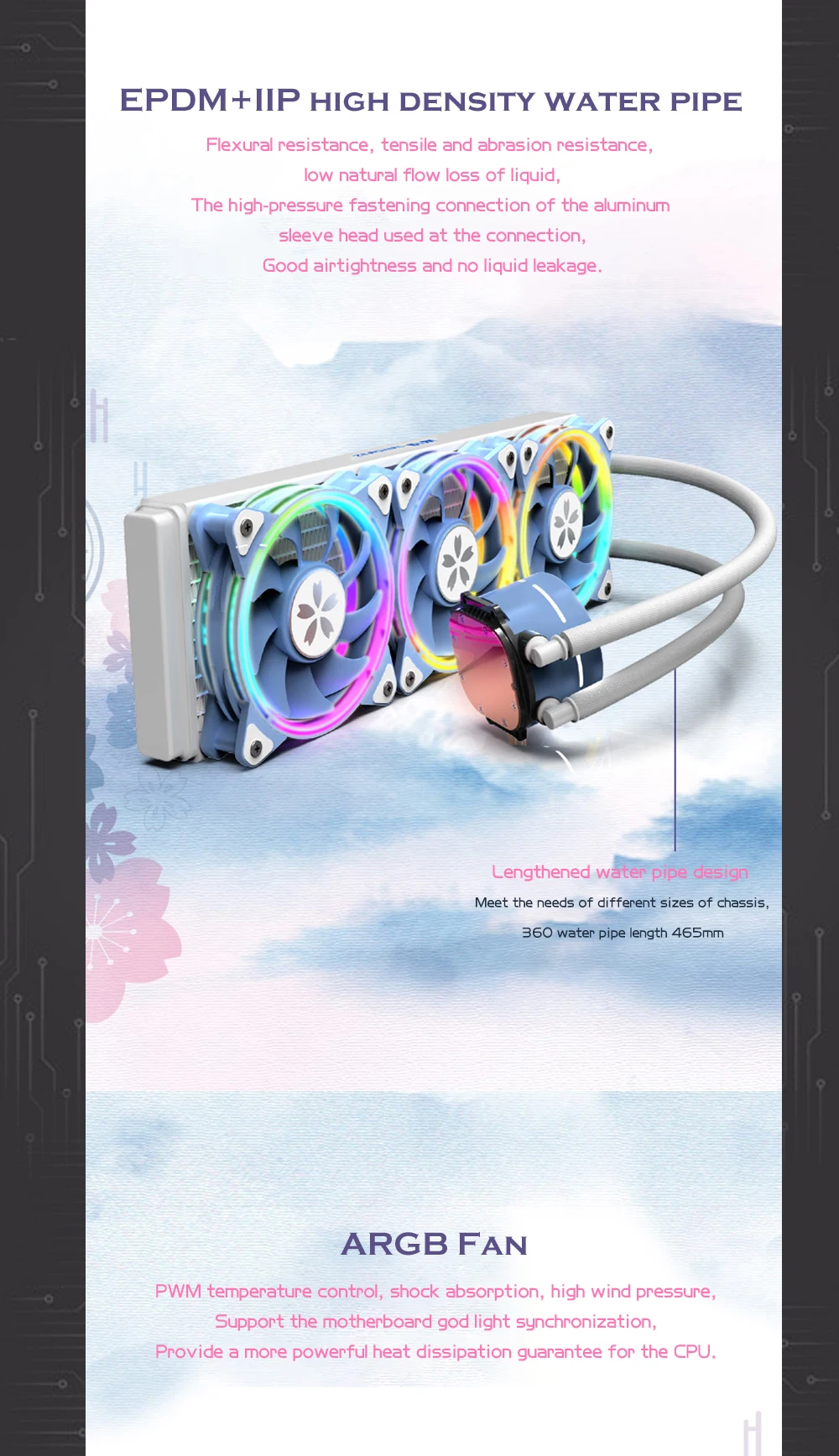 ZEAGINAL-Kit de refrigeración de CPU YESTON Sakura Hitomi 360 AIO, radiador de CPU refrigerado por agua todo en uno, 900-1800RPM, sincronización de 5V y 3 pines