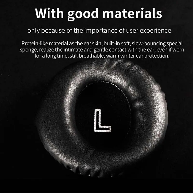Material similar a las proteínas como la piel de la oreja, esponja especial integrada suave, de rebotamiento lento, realiza el contacto íntimo y suave con la oreja, incluso si se usa durante mucho tiempo, sigue siendo transpirable, protección cálida para los oídos en invierno.