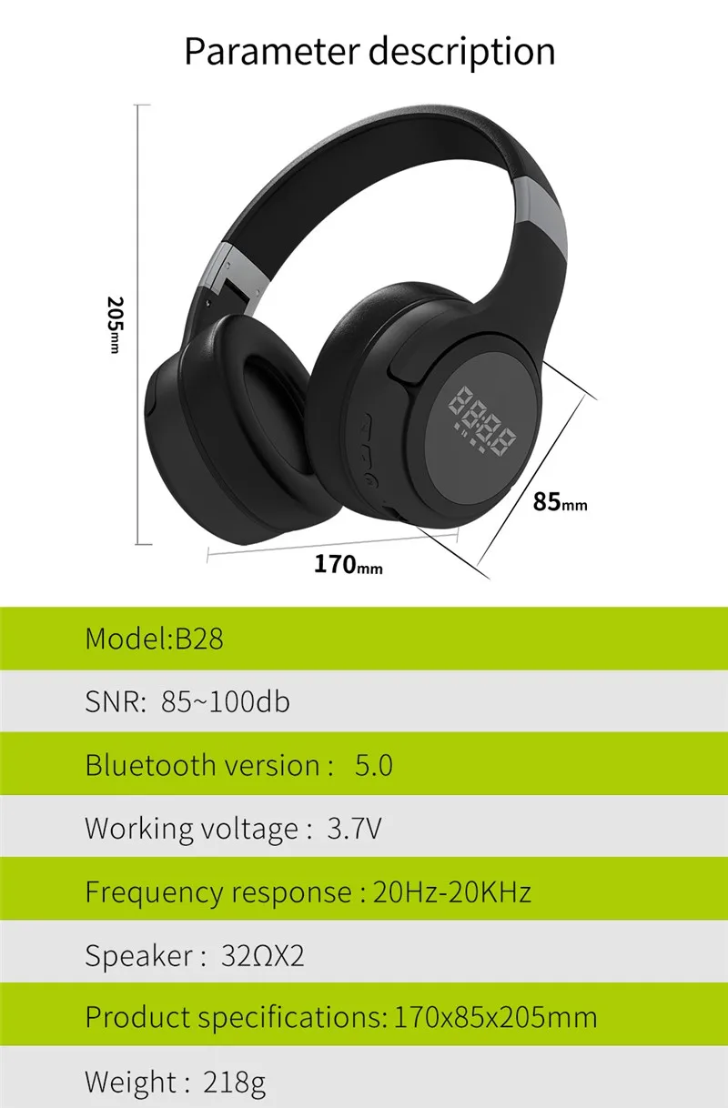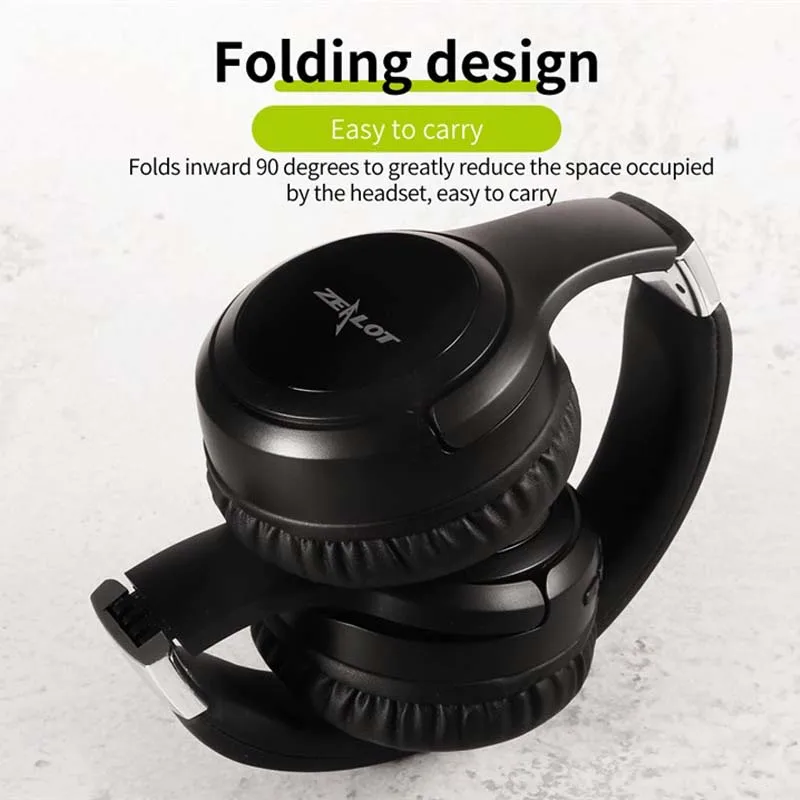 Comprar ZEALOT-auriculares inalámbricos B28 con reducción de ruido, cascos deportivos plegables estéreo con micrófono y pantalla Digital LED