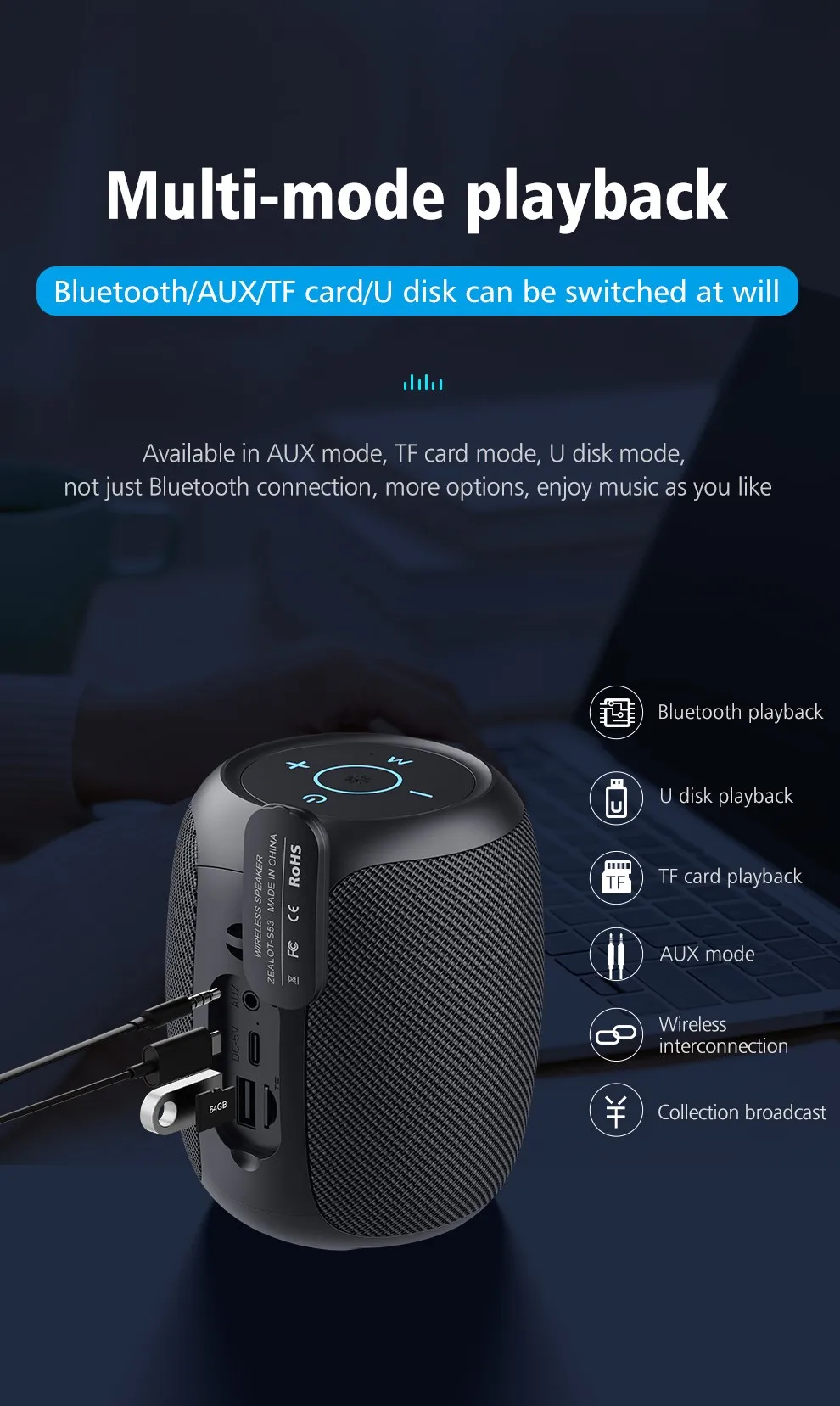 1 x Altavoz bluetooth Zealot S53 en caja de regalo