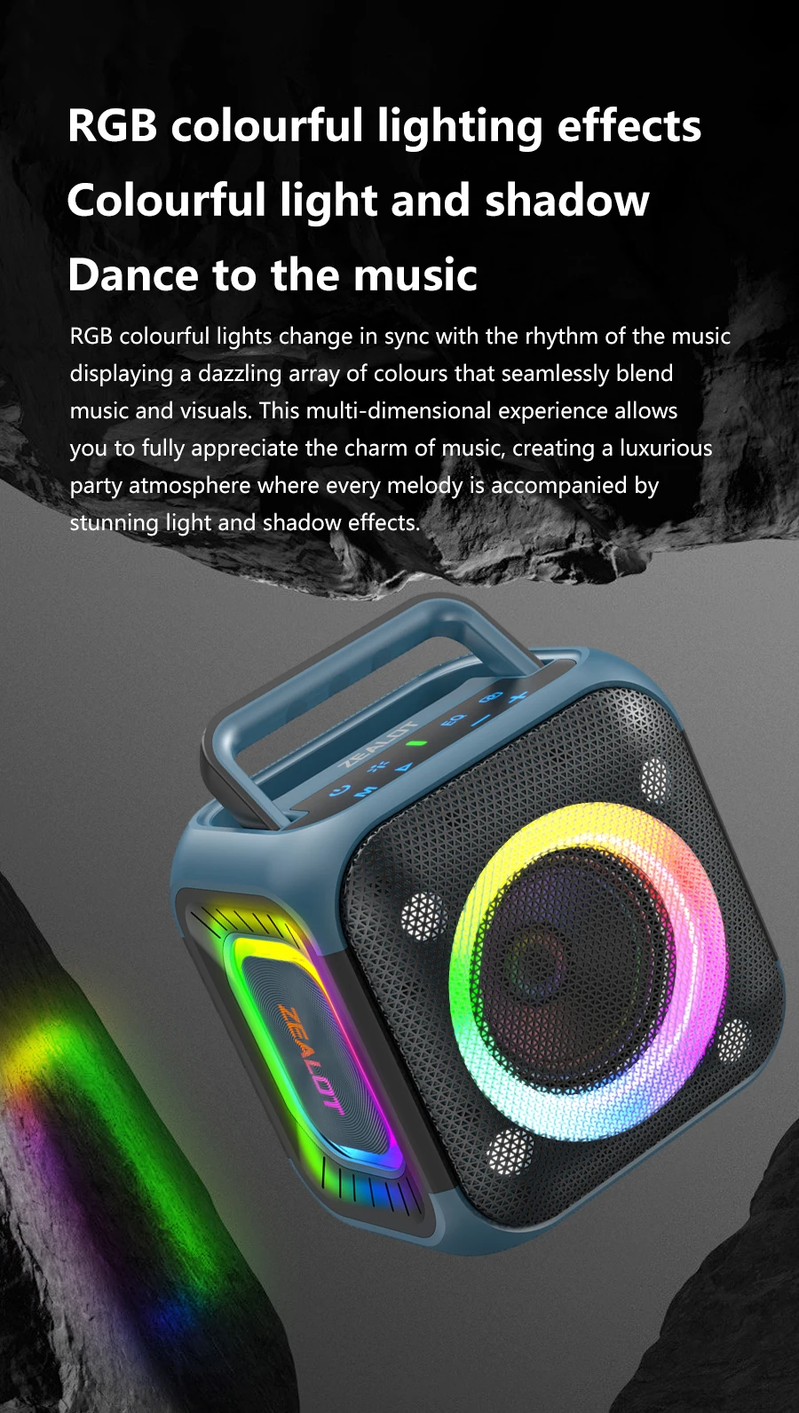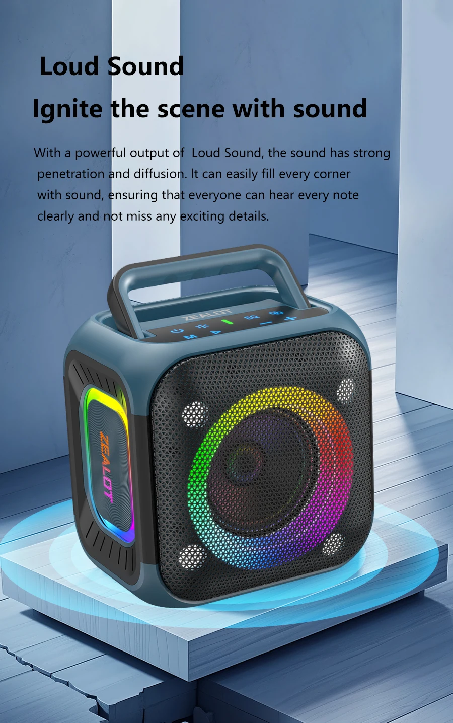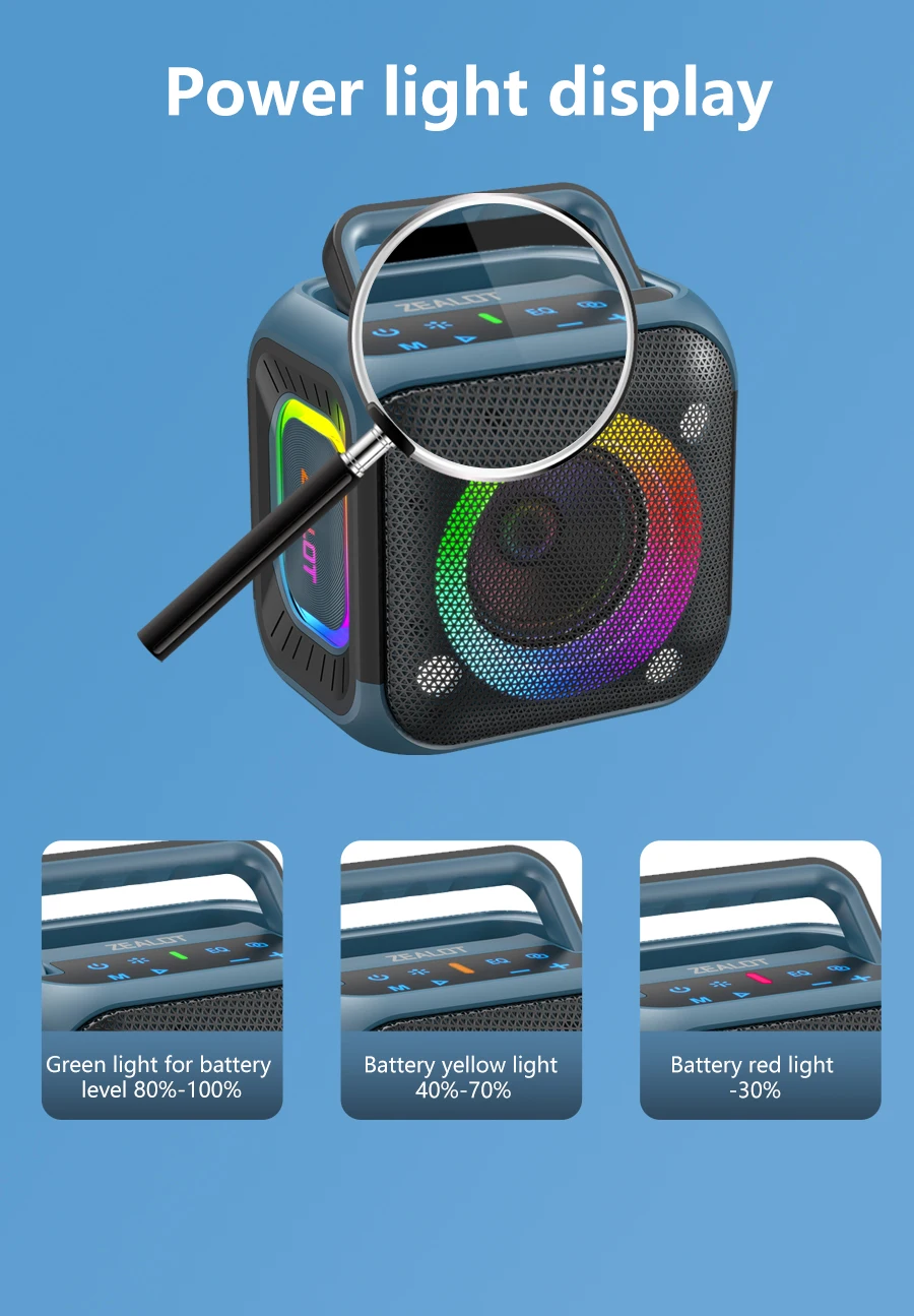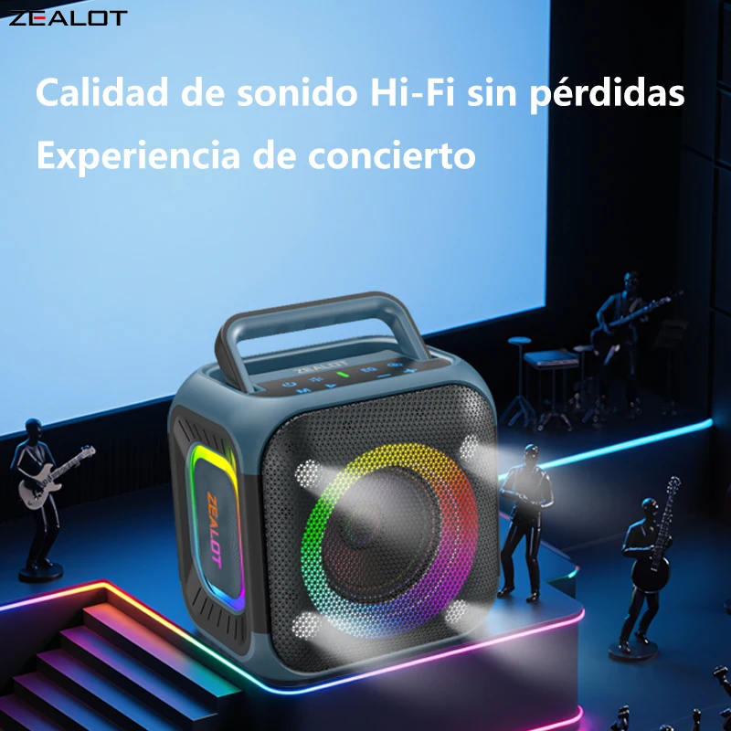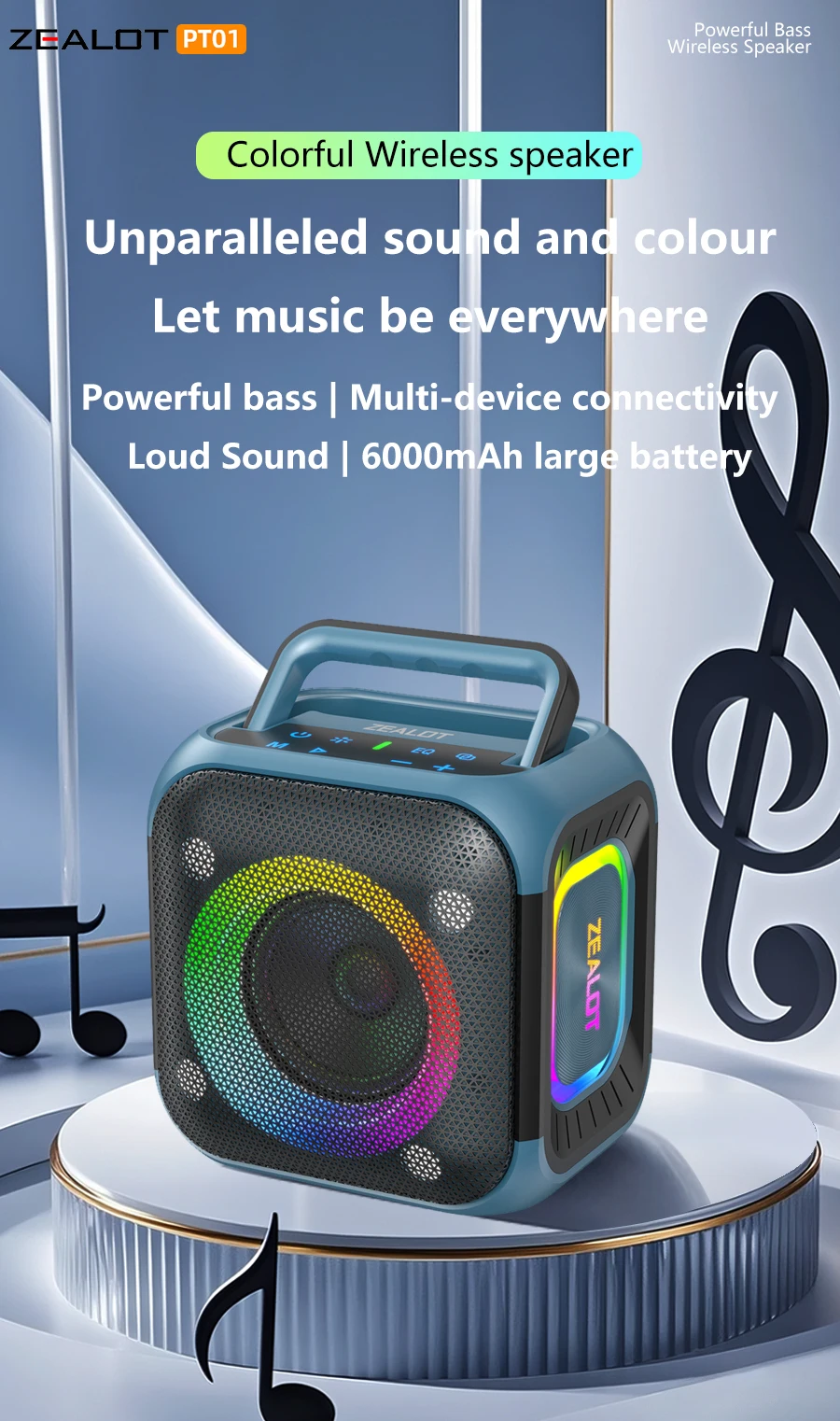Comprar ZEALOT PT01 Altavoces Inalámbricos 30W Batería 6000mAh, 360 ° Sonido envolvente, luz RGB, regalo para amantes de la música (cumpleaños/Navidad)