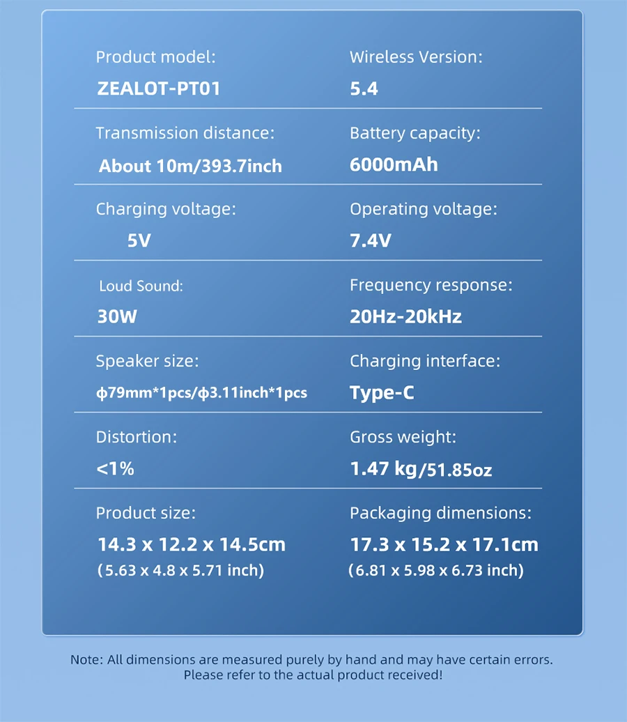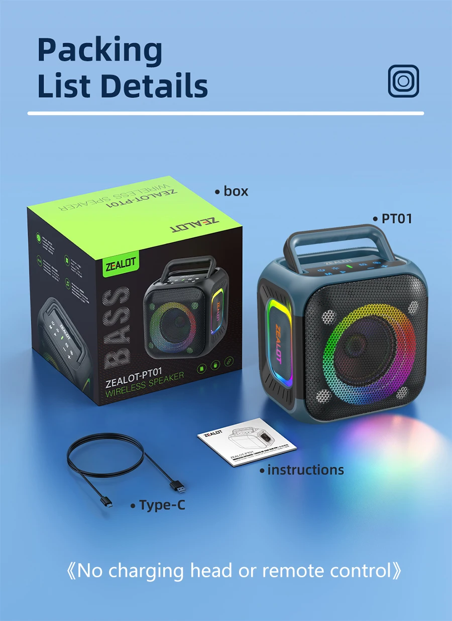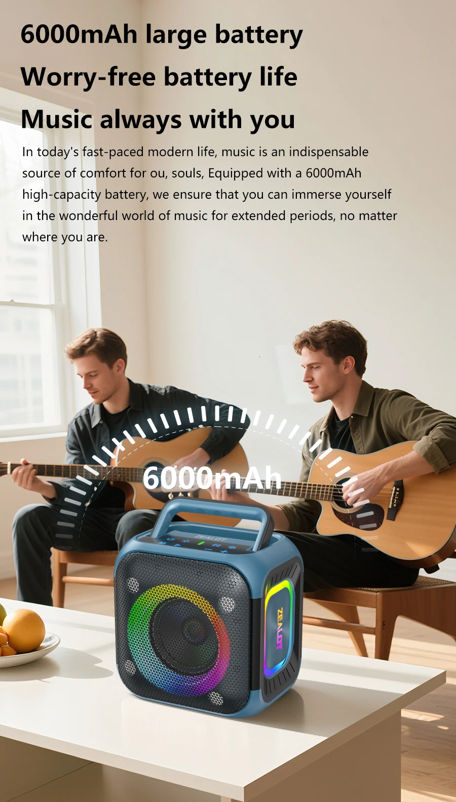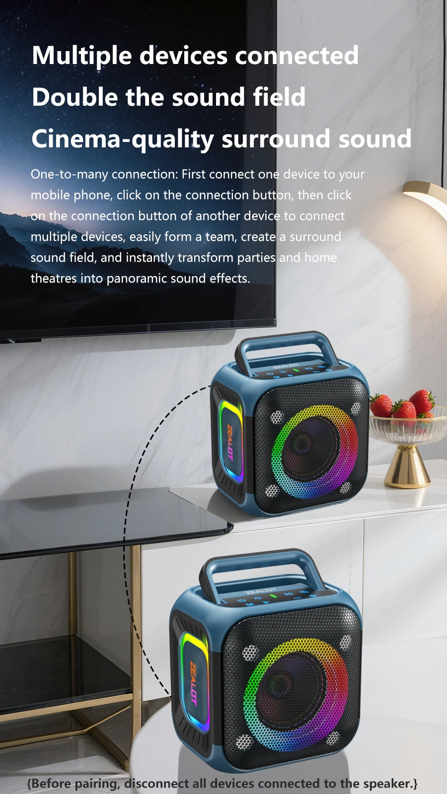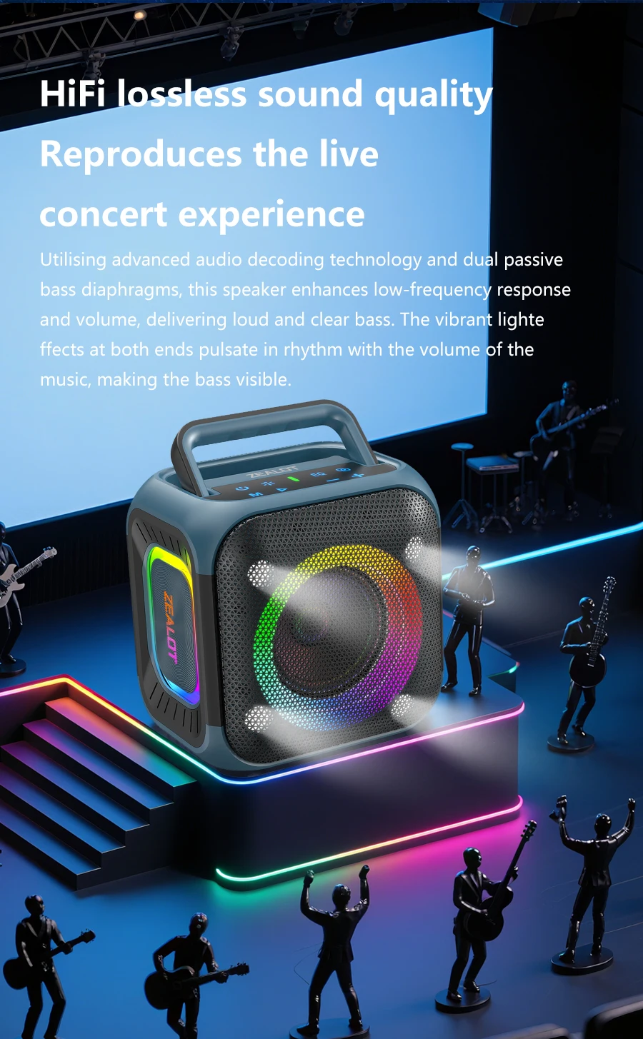 Comprar ZEALOT PT01 Altavoces Inalámbricos 30W Batería 6000mAh, 360 ° Sonido envolvente, luz RGB, regalo para amantes de la música (cumpleaños/Navidad)