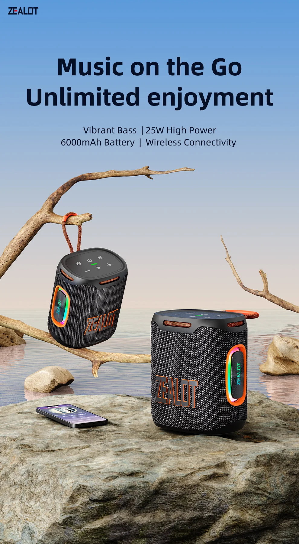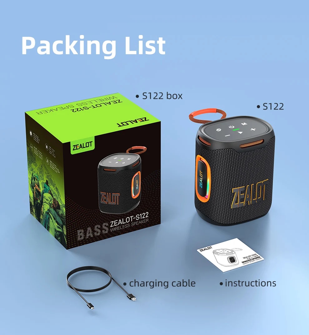 Los parlantes portátiles bluetooth inalámbricos son resistentes a salpicaduras, lluvia y salpicaduras suaves, por lo que son aplicables en la ducha, junto a la piscina o la playa.Pero no lo deje caer directamente al agua.Además, los altavoces inalámbricos bluetooth de Zealot cubren 12 meses de experiencia de compra sin complicaciones y nuestra asistencia de atención al cliente de por vida.Si estás haciendo decoraciones de Halloween, deja que la música rodee a tu lado, colorea tu vida.