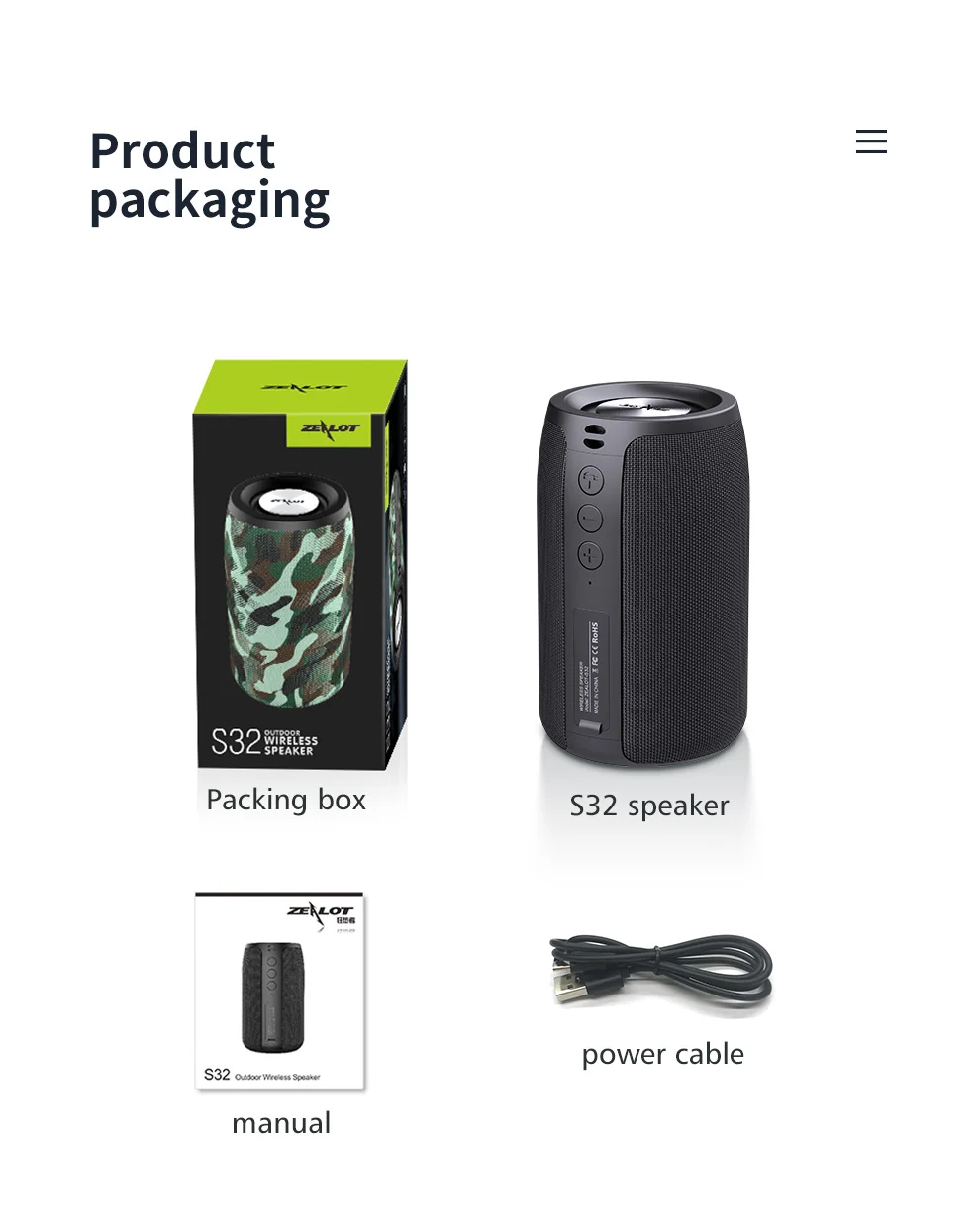 1 x Altavoz Bluetooth Zeagoo S32 en caja de regalo
