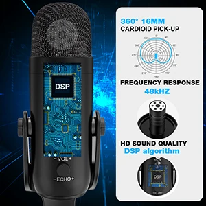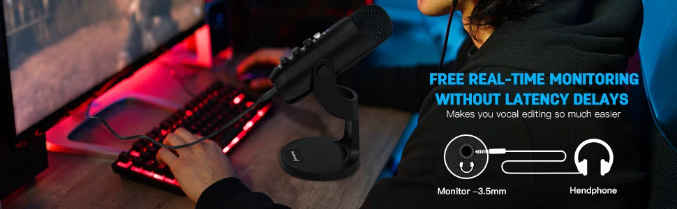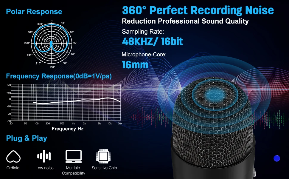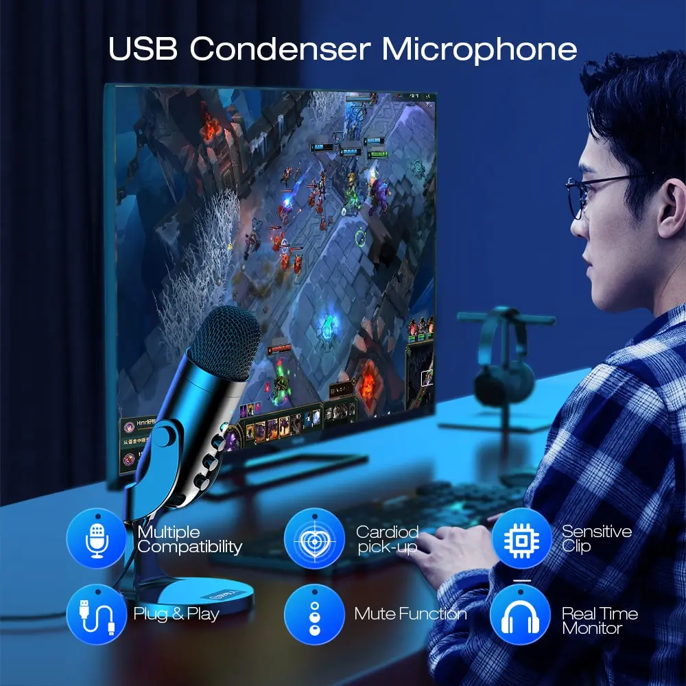 Comprar ZealSound-micrófono de condensador USB, micrófono de grabación de estudio para PC, ordenador, Streaming, vídeo, juegos, Podcasting, Vocal, Color negro y azul