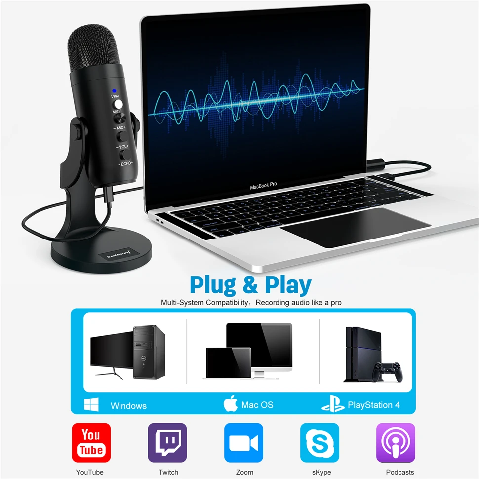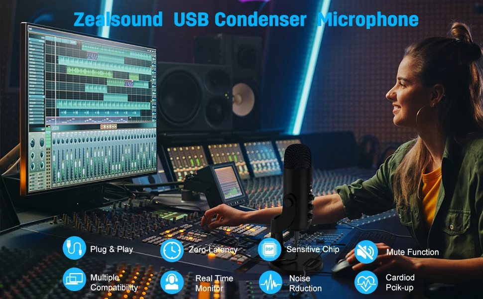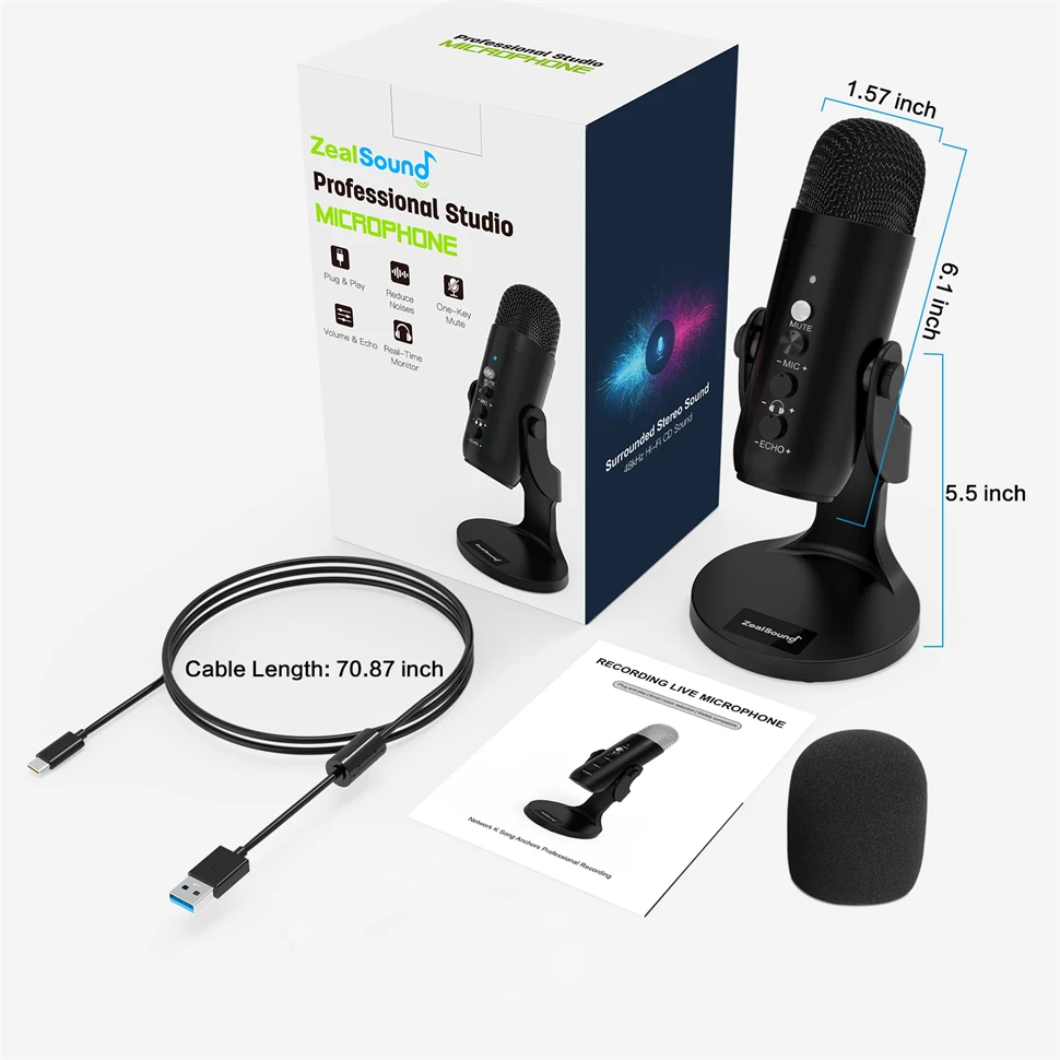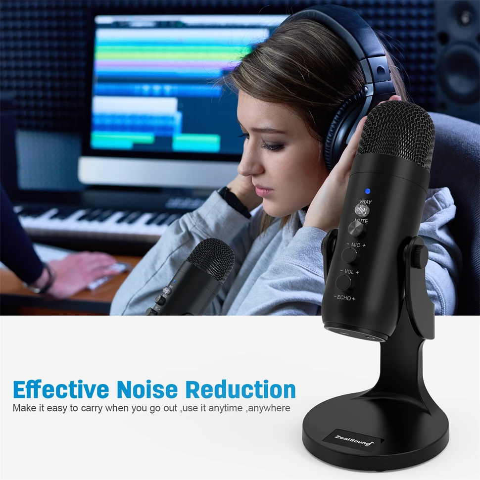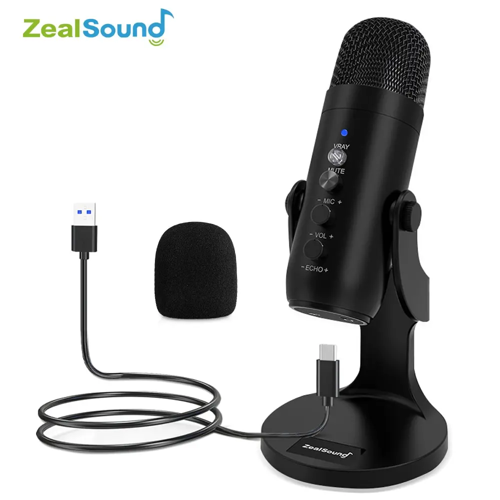 ZealSound-micrófono de condensador USB, micrófono de grabación de estudio para PC, ordenador, Streaming, vídeo, juegos, Podcasting, Vocal, Color negro y azul
