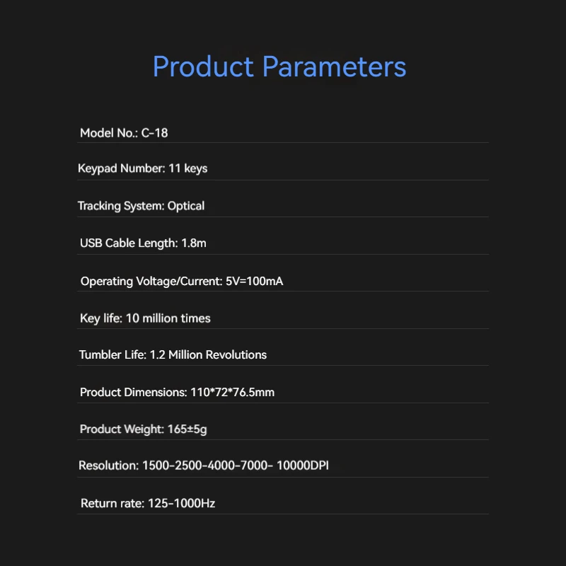 ZELOTES C18 Ratón vertical Ratón óptico de 11 teclas 10000DPI soporte programación cómodo ratón para juegos