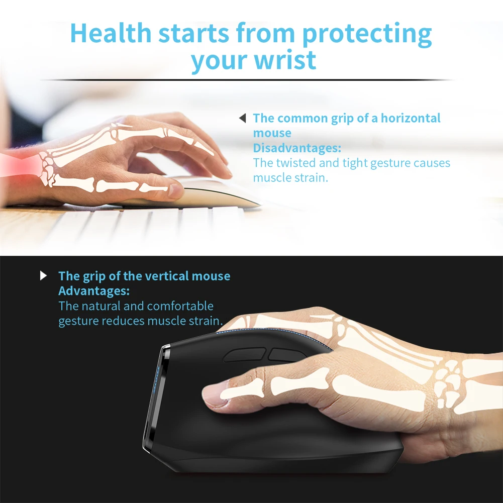 Ratón vertical ergonómico ZELOTES, 6 botones, ratones recargables inalámbricos, 2400 DPI, Accesorios de ordenador ajustables,
