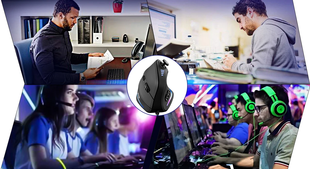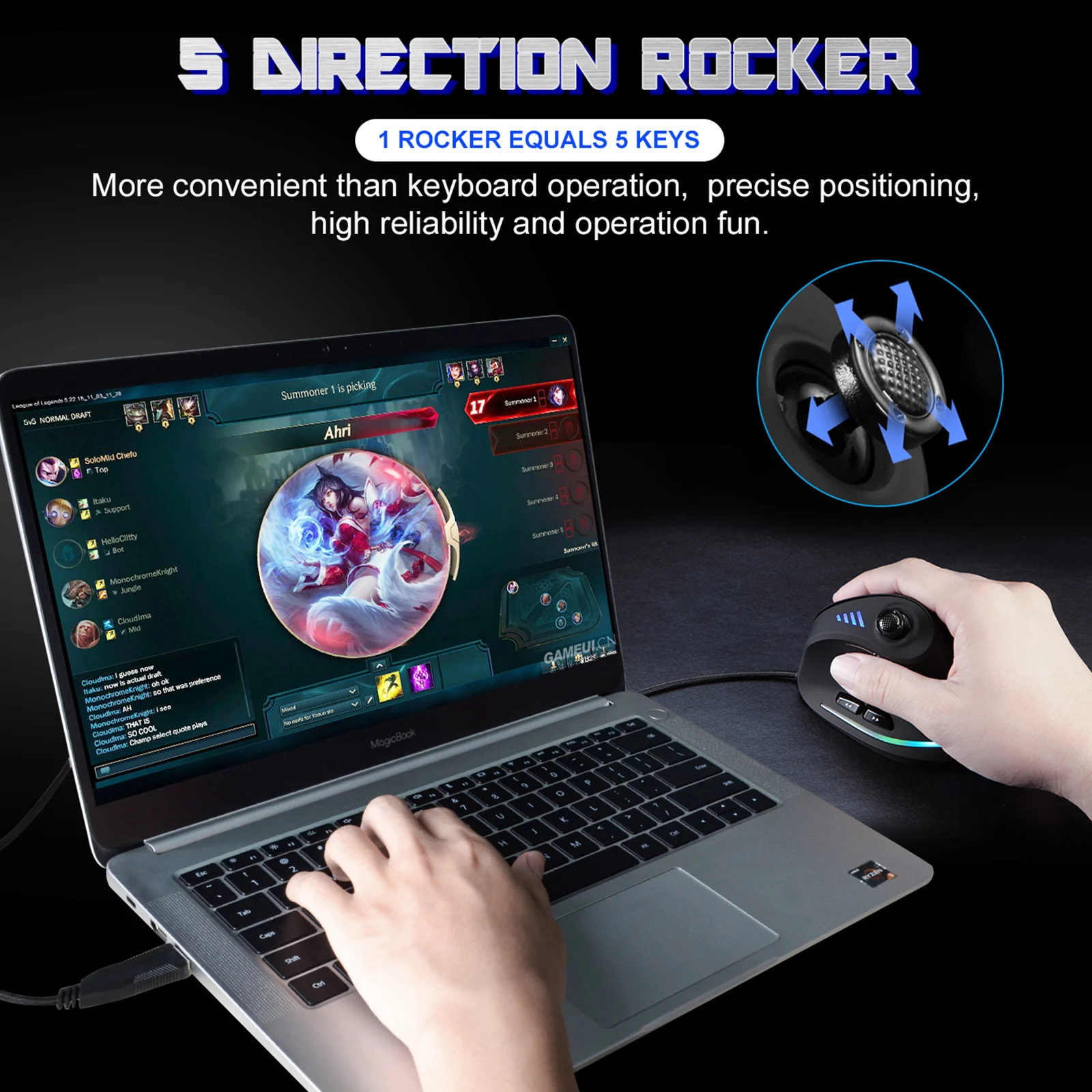 Comprar ZELOTES ratón Vertical para juegos con cable USB ratones ergonómicos RGB Joysticks ratones láser programables 10000 DPI para Gamer PC ordenador C18