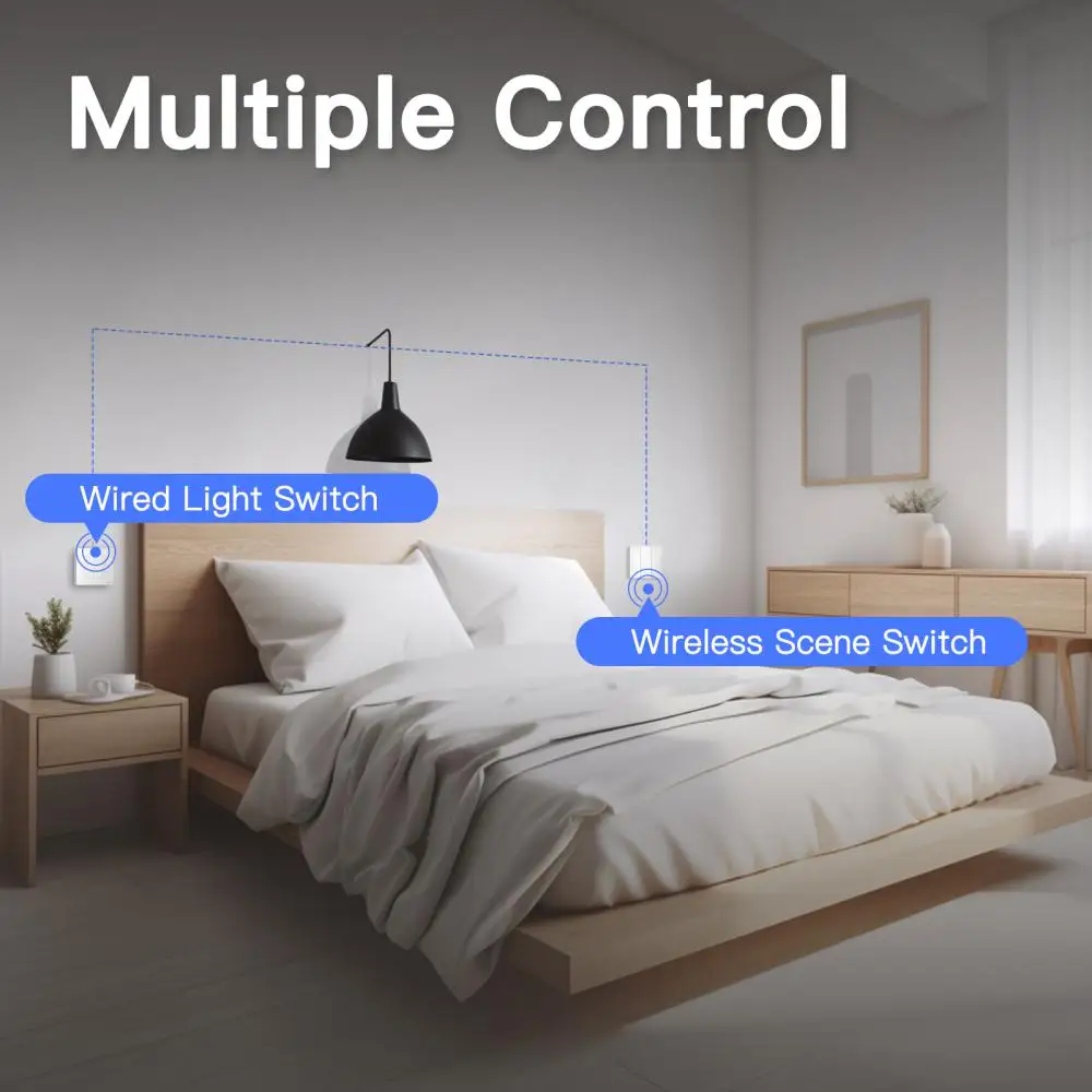 No se preocupe por problemas de recableado, puede usar interruptores de escena para realizar un control doble o incluso controlar el dispositivo.