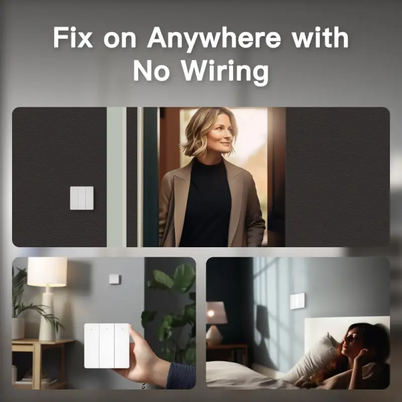 Pegue o coloque el interruptor de escena en cualquier lugar de su casa o incluso sujételo en la mano, lo que significa que en cualquier momento y en cualquier lugar que necesite, hay un interruptor de escena para controlar.