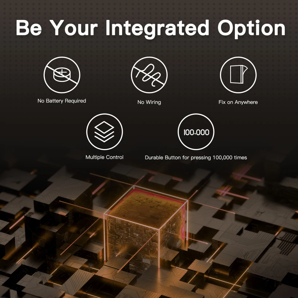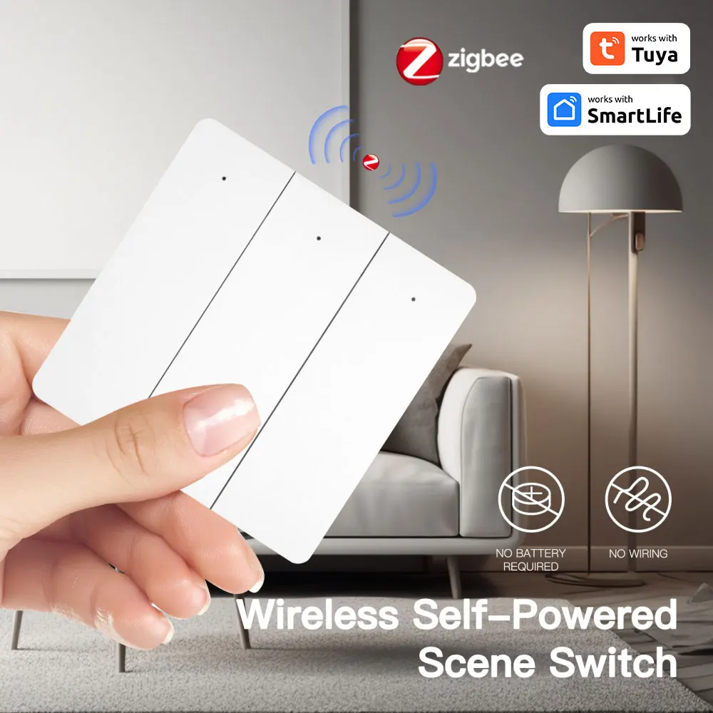 Un interruptor de escena para arreglar en cualquier lugar, sin necesidad de cableado o incluso batería, como una opción perfecta en el hogar inteligente.