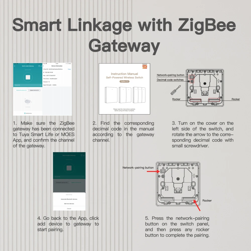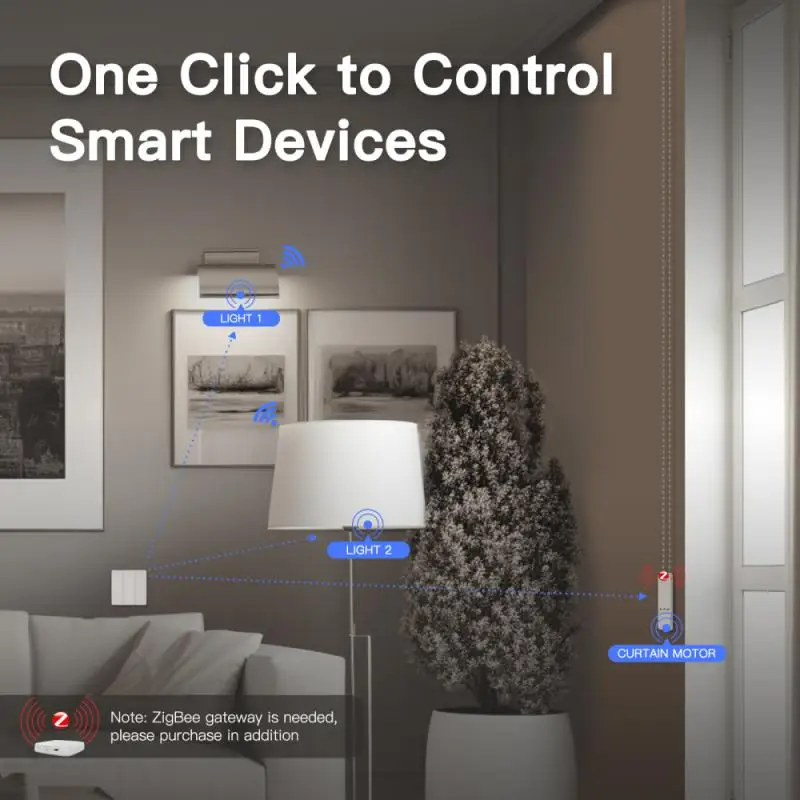 Como interruptor de escena, puede vincularse con el dispositivo Tuya en su hogar, en la premisa de un correcto enlace con la puerta de enlace.