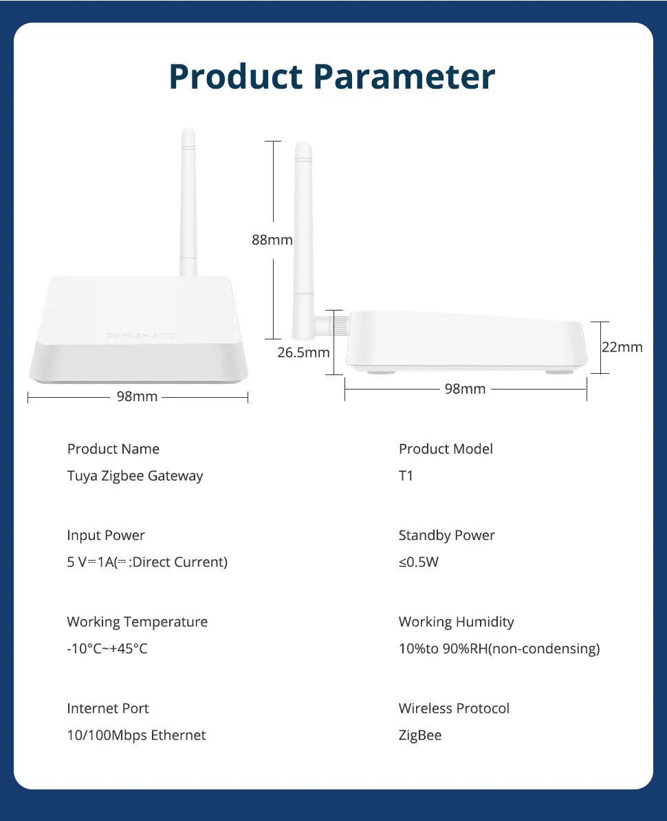 - Este concentrador le permite controlar dispositivos Tuya ZigBee como motores de cortina, enchufes, interruptores, bombillas y sensores, etc.Es imprescindible para todos los productos Tuya ZigBee.