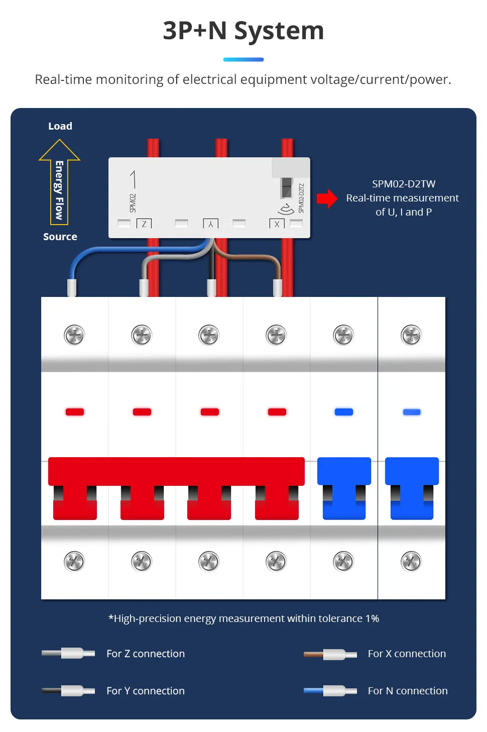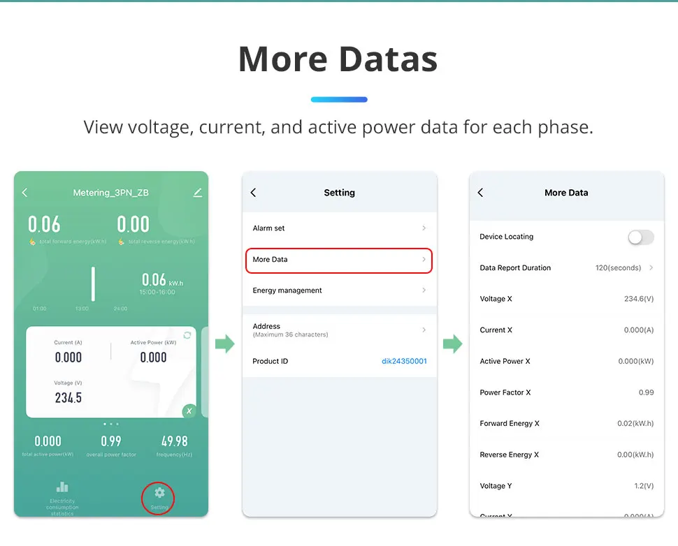 - Easy-to-use: Installation alone can help EV charger meet residual current Measuring of Voltage, Current, Power, Power Factor, Energy.