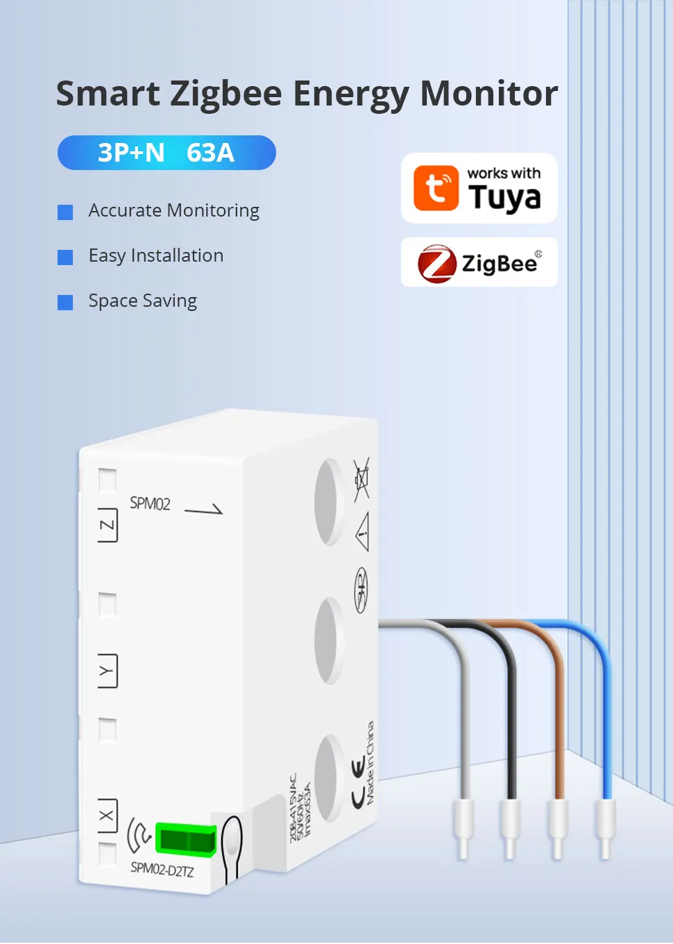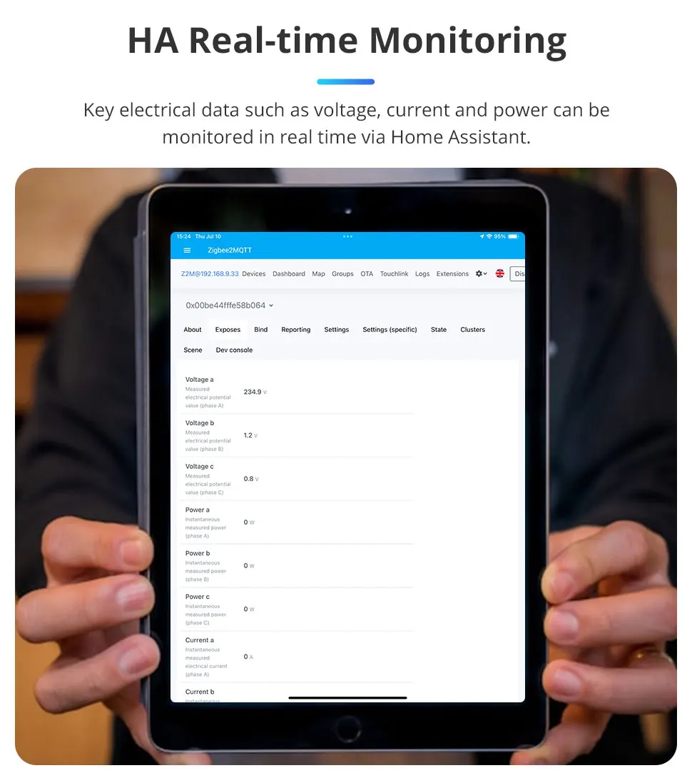 Zemismart Zigbee Smart Energy Meter 3 Phase 4 Wire Power Monitor Sensor Zigbee 2MQTT Home Assistant Control 208V 415V