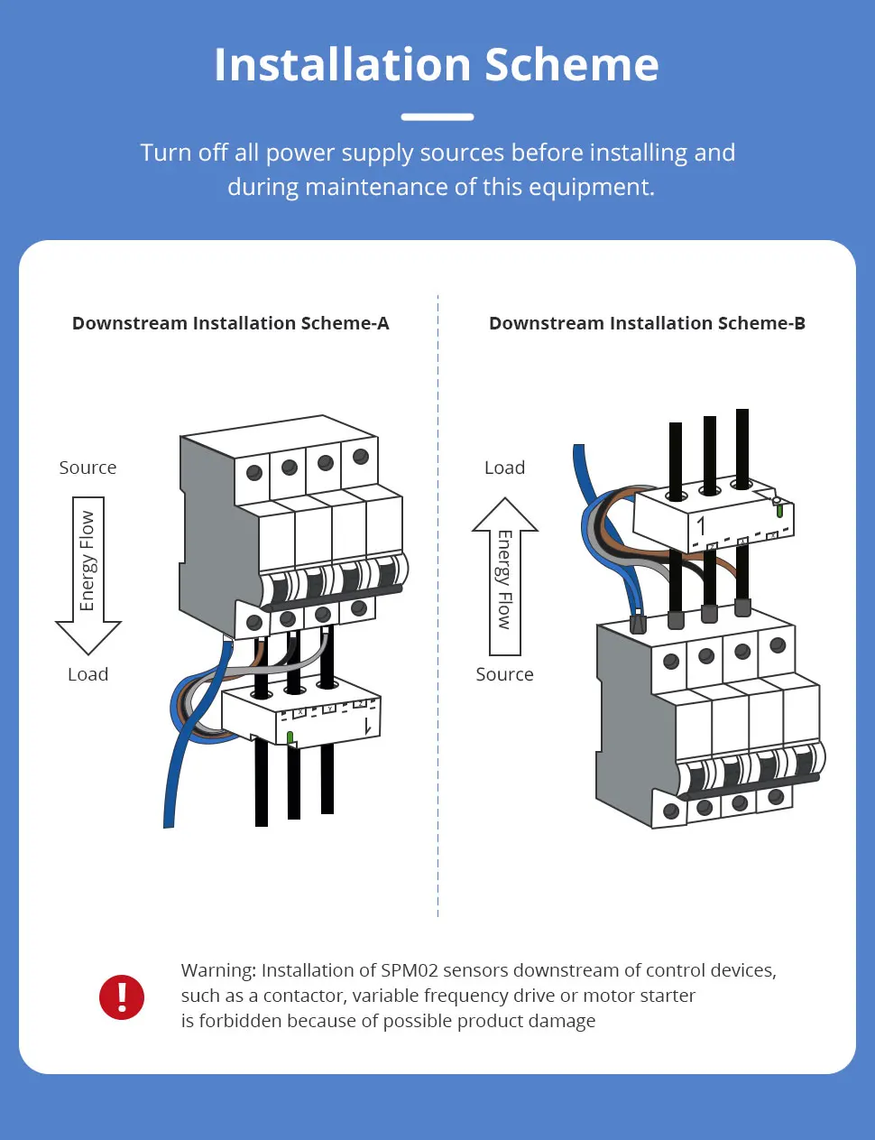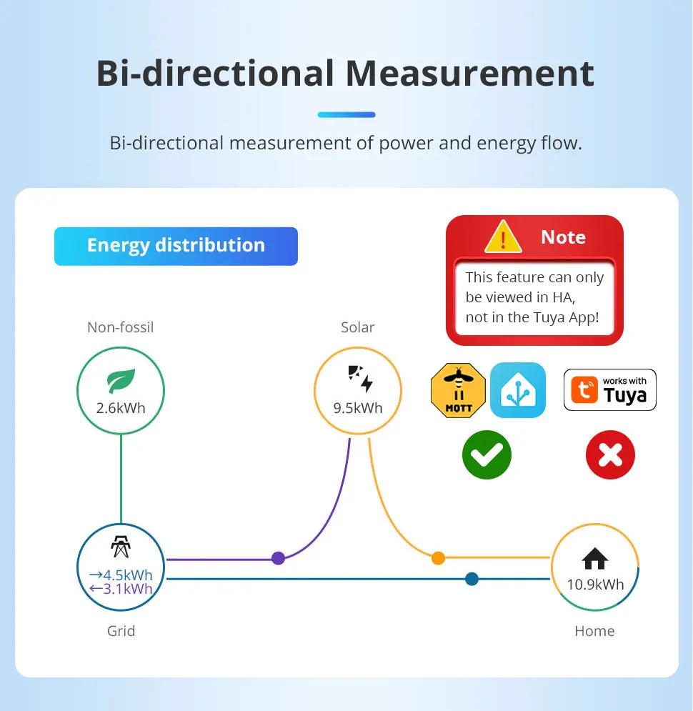 - Two Way Metering: the 3 Phase energy meter can accurately measure both the electricity consumption in the home and the amount of solar energy produced.(NOTE: If among the three phases, one phase is solar energy and the other two phases are the power grid, you need to use one SPM01 to measure the power generation, and use SPM02 for the remaining two phases to detect the power consumption of the power grid.)