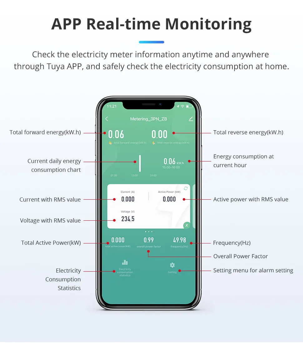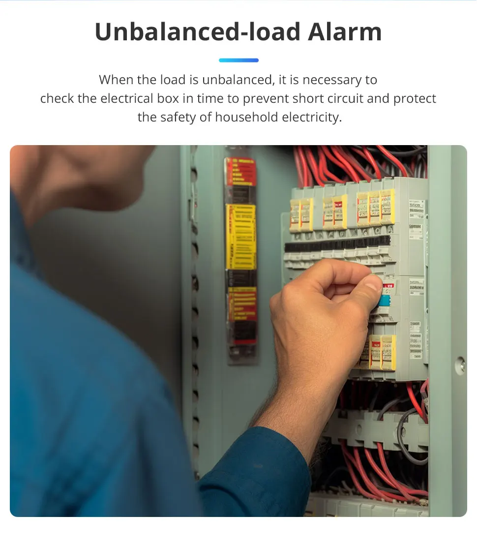 - Unbalanced-load Alarm: when the load is unbalanced, it is necessary to check the electrical box in time to prevent short circuit and protect the safety of household electricity.