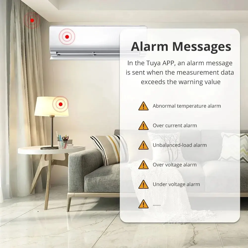 - Unbalanced-load Alarm: when the load is unbalanced, it is necessary to check the electrical box in time to prevent short circuit and protect the safety of household electricity.