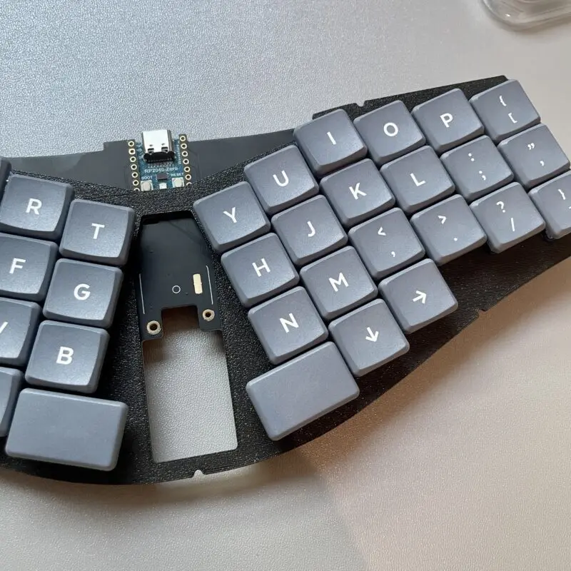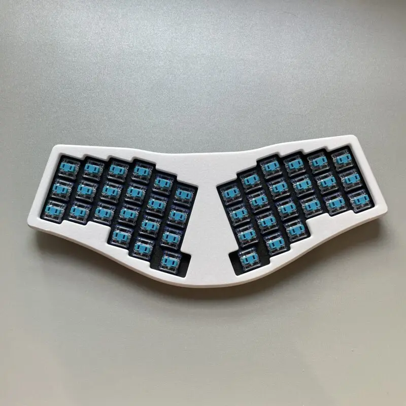 El teclado Zerosprey42 es un teclado mecánico de perfil bajo para principiantes, compatible con choque hotswap, MonoBlockSplit (Unibody), escalonado por columna.Equilibra entre portabilidad y ergonomía con un estuche elegante.Esta es una remezcla de'scon un RP2040-Zero de bajo costo.