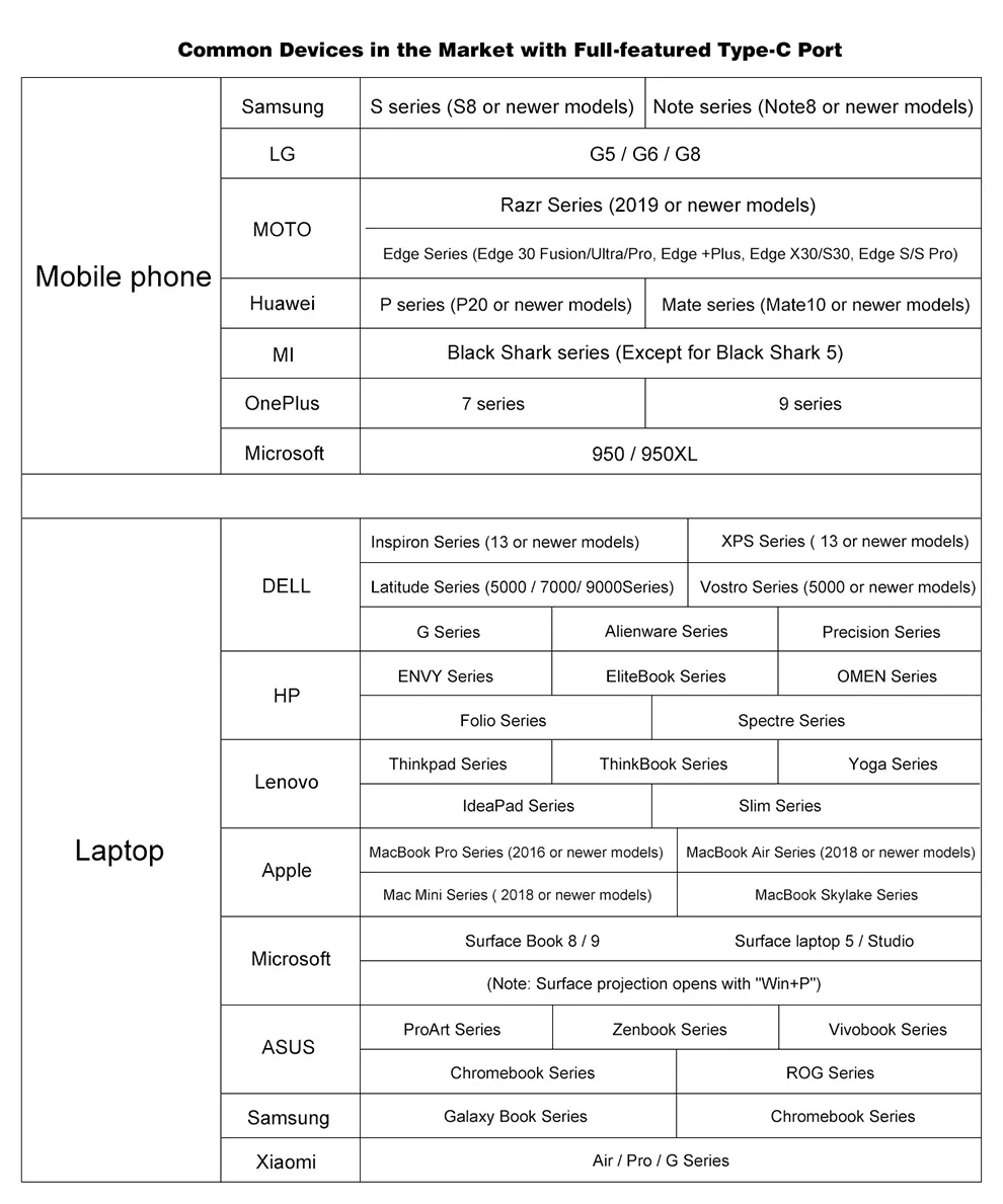 Compatible con teléfonos y portátiles Thunderbolts a través deTIPO Cconexión