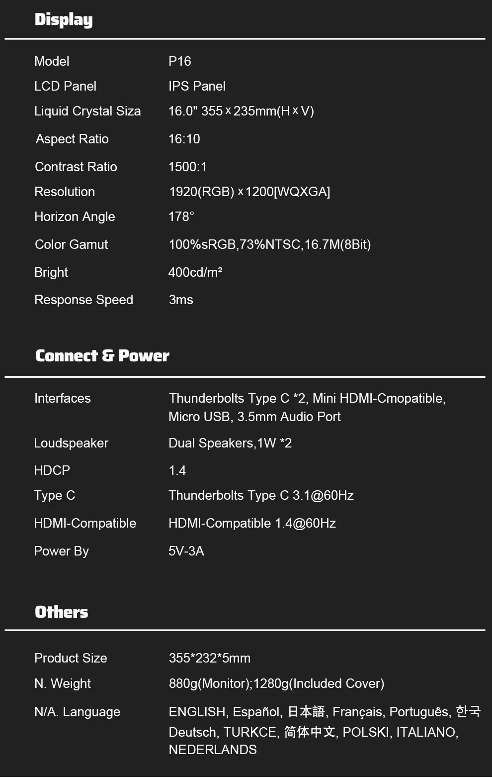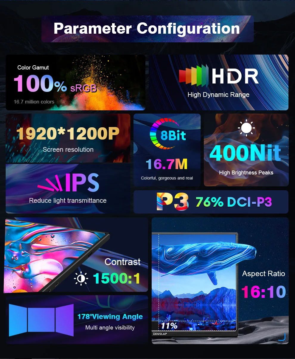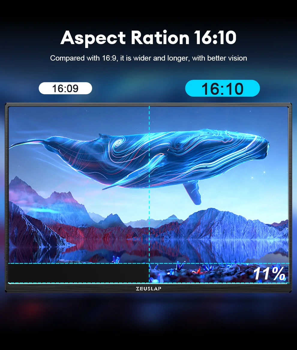 Comprar ZEUSLAP 16 "Monitor portátil 100% sRGB 1200P pantalla IPS pantalla de ordenador de juegos de viaje para Steam Deck Laptop Switch PS4 PS5 Xbox