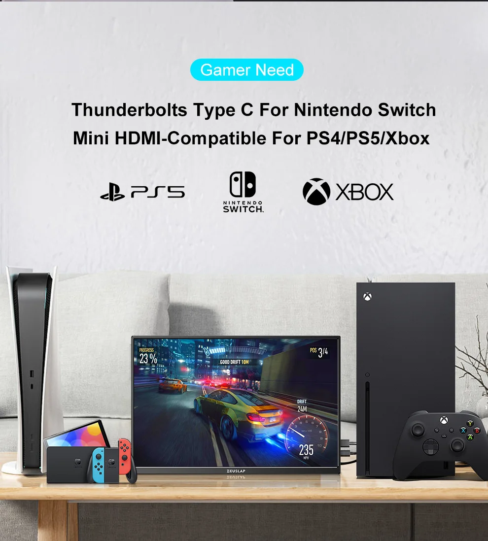 P: 4.¿Cómo conectar el monitor portátil ZEUSLAP con mi PS4/PS5/Xbox One/TV box/Mini PC?