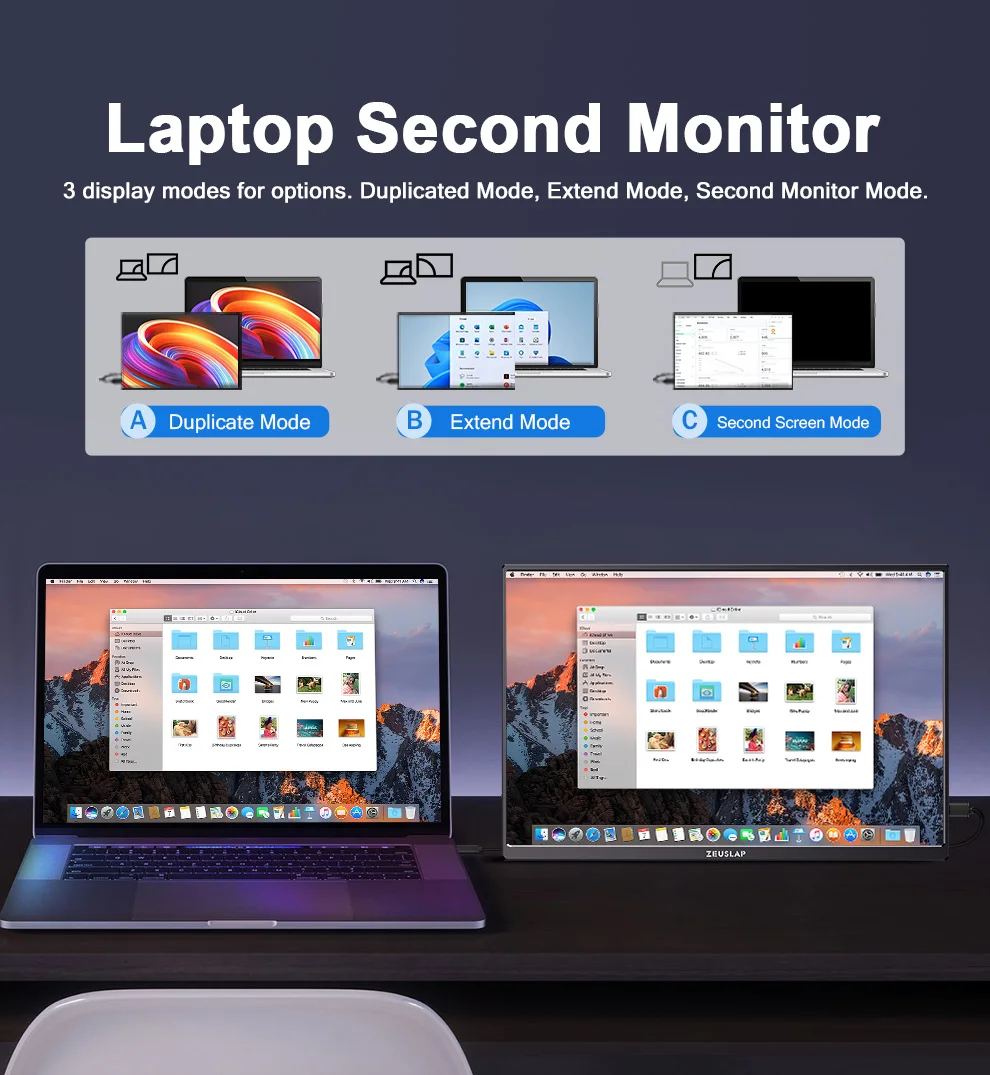 P: 2.¿Qué pasa si mi computadora portátil no es un teléfono Thunderbots tipo C? ¿Cómo hacer que funcione con el monitor portátil ZEUSLAP?