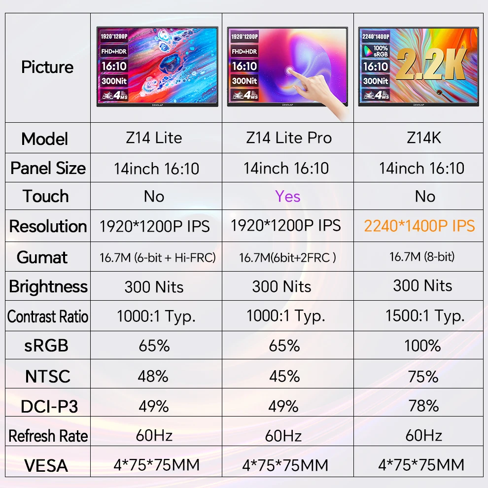 Comprar ZEUSLAP-Monitor portátil para ordenador portátil LG Gram, pantalla extensible de 14 ", 16:10, 1920x1200P, 100% sRGB, 300Cd/m²