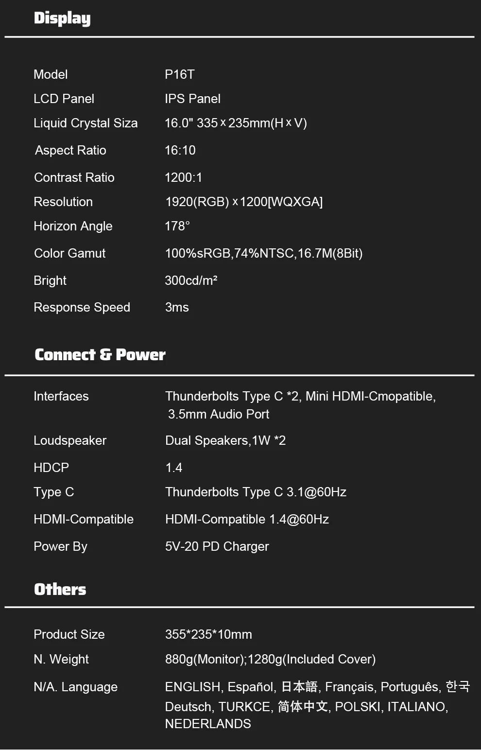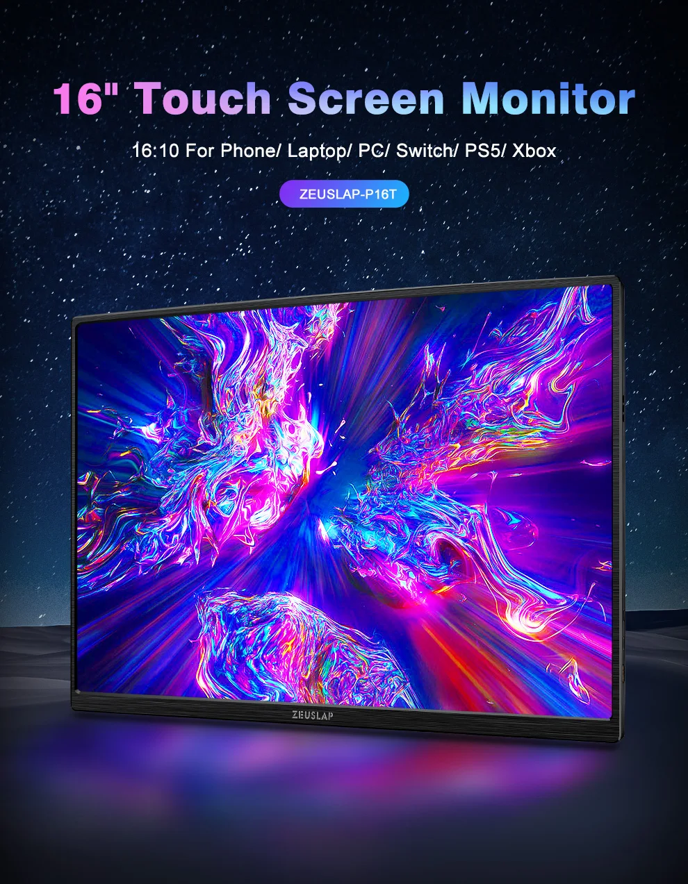 Comprar ZEUSLAP-Monitor portátil con pantalla táctil de 16 pulgadas, dispositivo con 100% sRGB, 1200P, IPS, para viaje, para ordenador portátil, Switch, PS4, PS5, Xbox