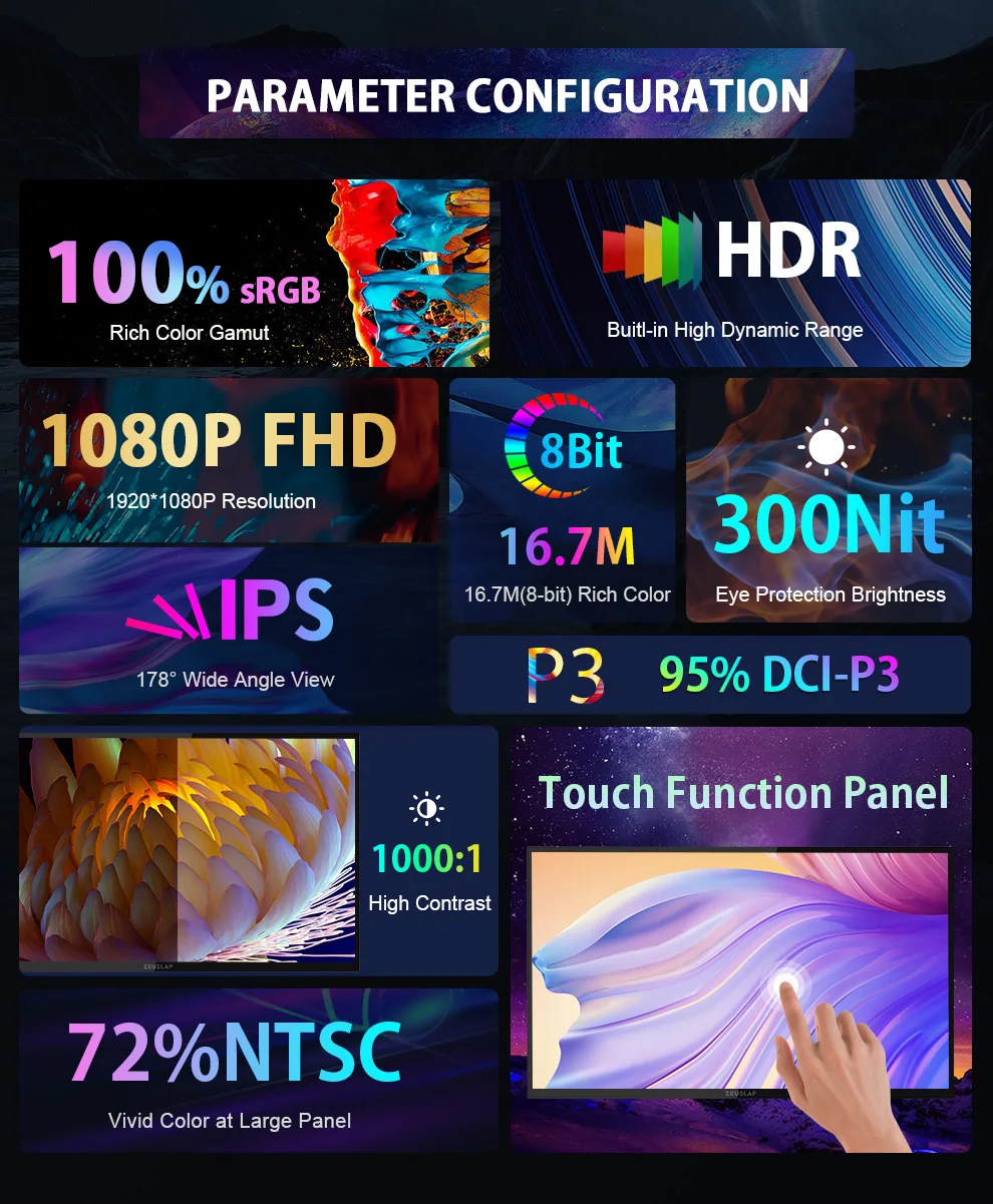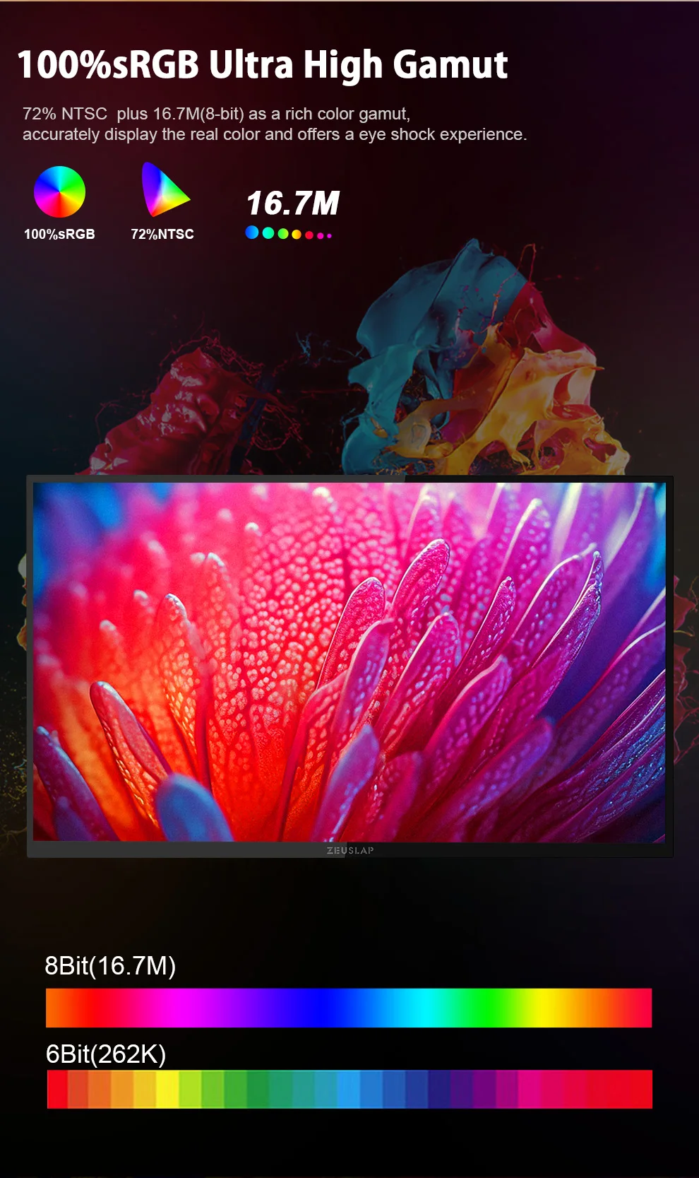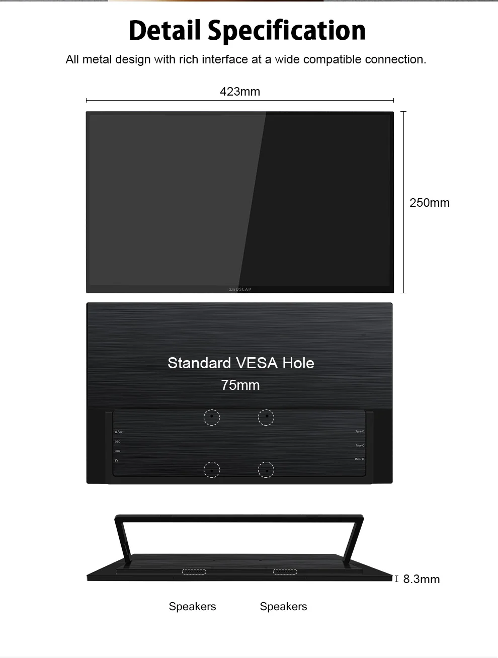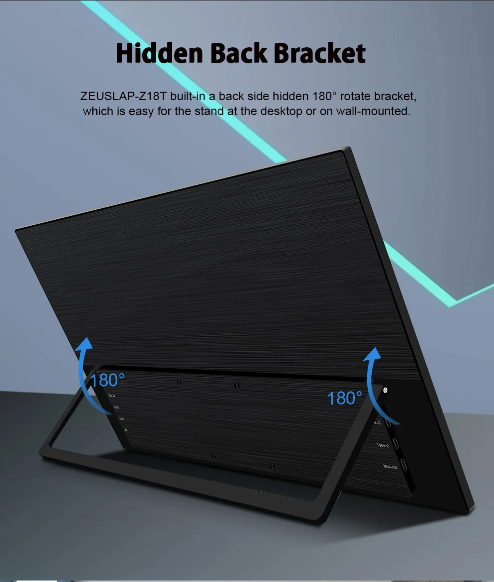 Comprar ZEUSLAP-Monitor portátil con pantalla táctil de 18,5 pulgadas, 100Hz, 100% sRGB, soporte de pantalla para ordenador portátil, teléfono, Xbox, PS4, PS5, Switch