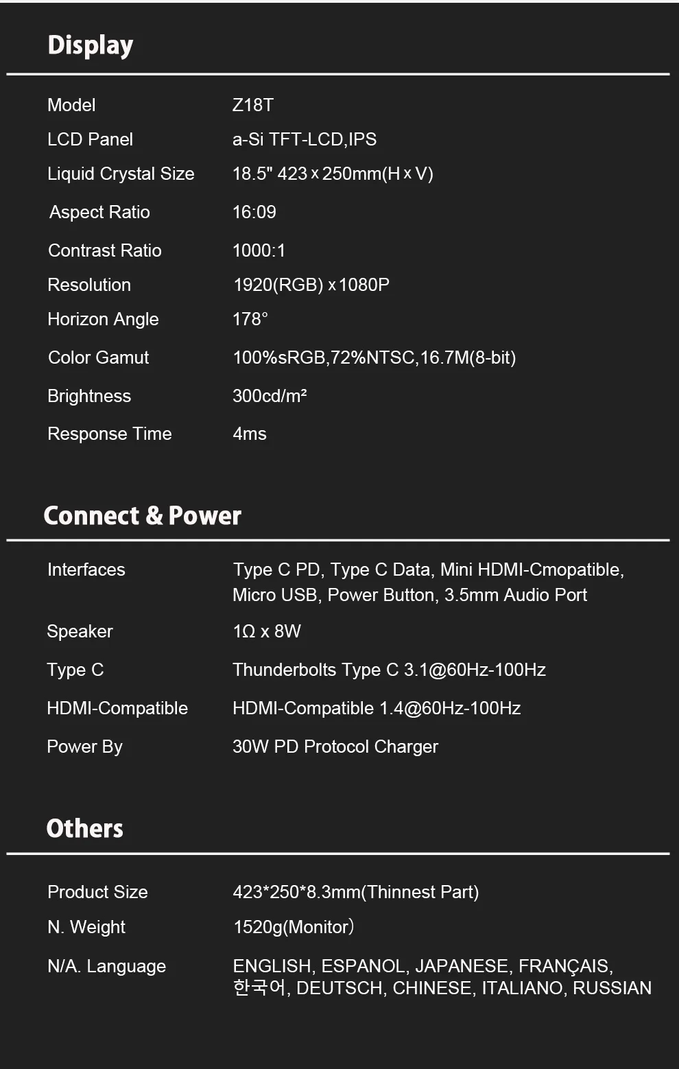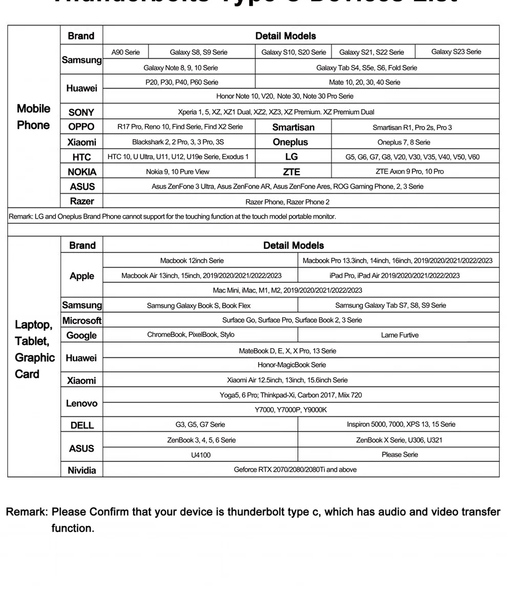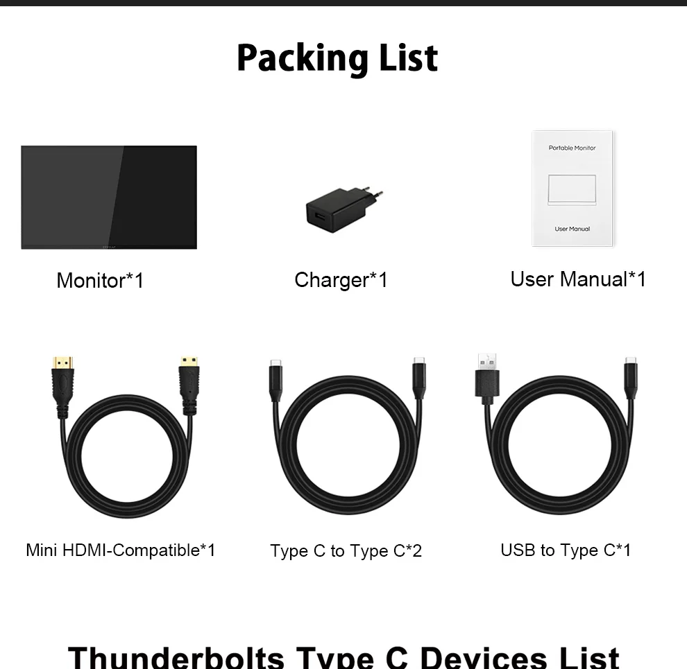 R: Todos estos dispositivos están conectados con el monitor a través de una conexión compatible con HDMI. Primero: alimentación por el monitor con el cargador incluido (conecte el puerto PD tipo C); En segundo lugar, Mini cable compatible con HDMI para conectar el dispositivo y el monitor.