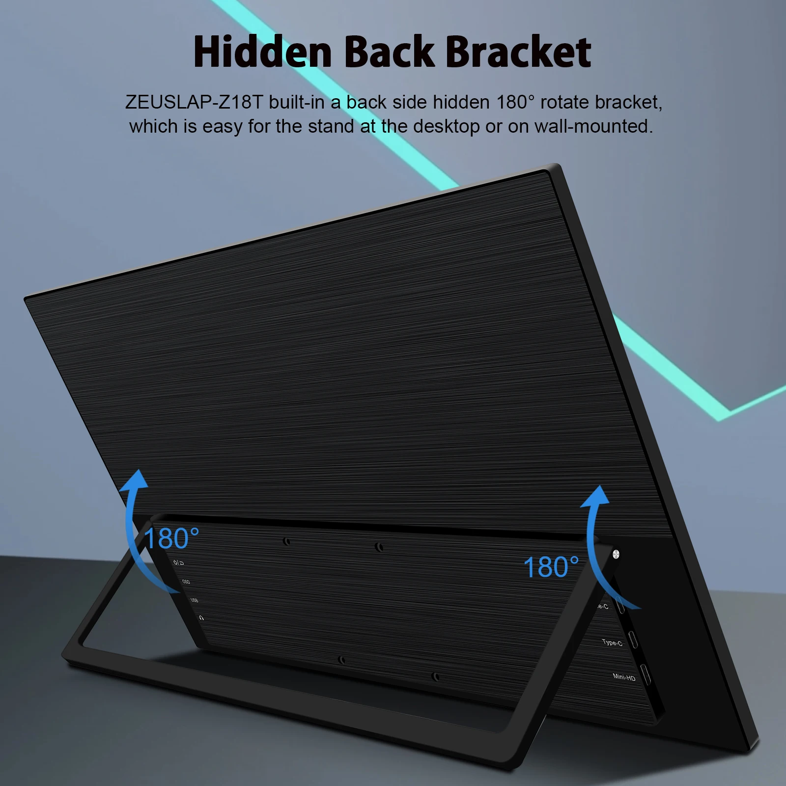 Comprar ZEUSLAP-Monitor portátil con pantalla táctil de 18,5 pulgadas, 100Hz, 100% sRGB, soporte de pantalla para ordenador portátil, teléfono, Xbox, PS4, PS5, Switch