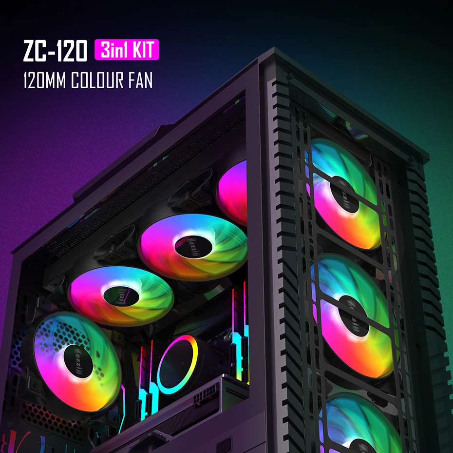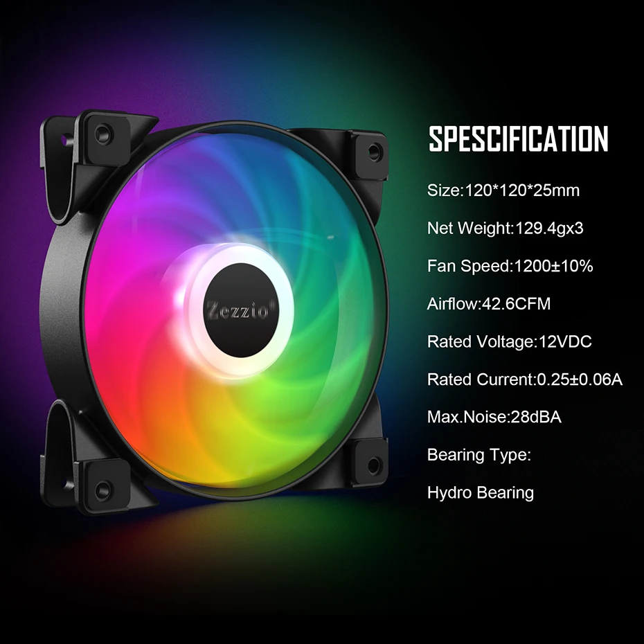 Comprar Zezio-ventilador de refrigeración de CPU, enfriador silencioso de 3 pines y Puerto molex, ZC-120, 120MM, LED, 6 colores deslumbrantes