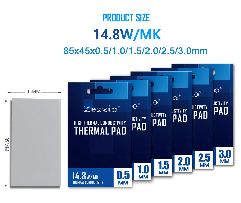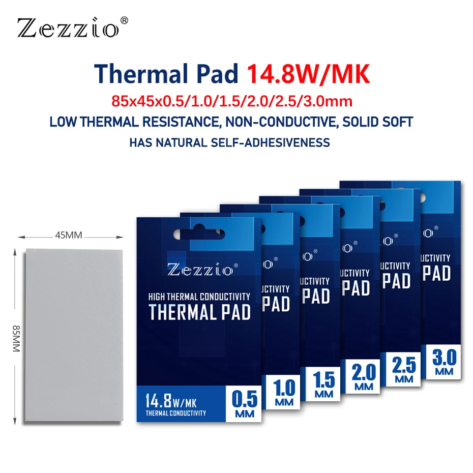 Comprar Zezzio-almohadilla térmica de alto rendimiento 14,8 W/MK 85x45mm para CPU, placa base GPU, minería de RAM, silicona conductora térmica multifunción