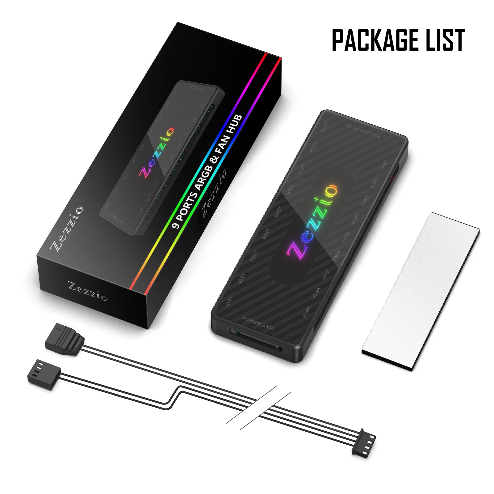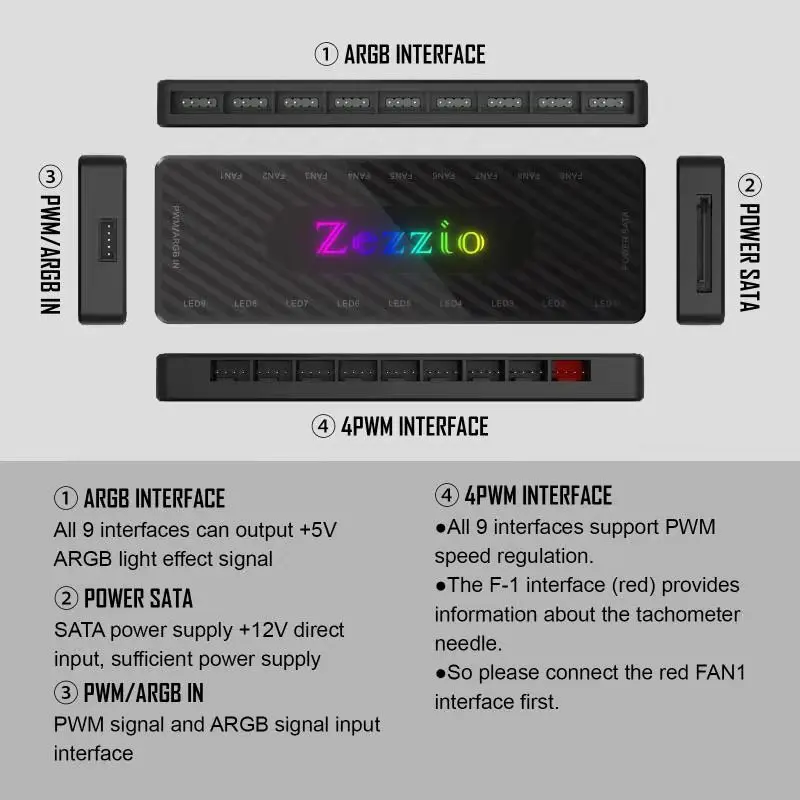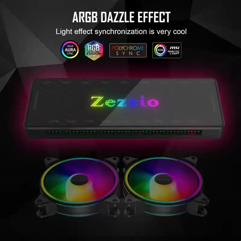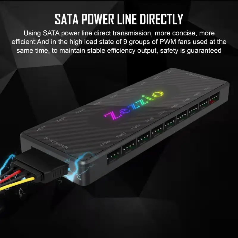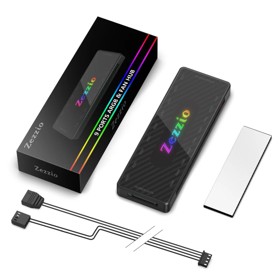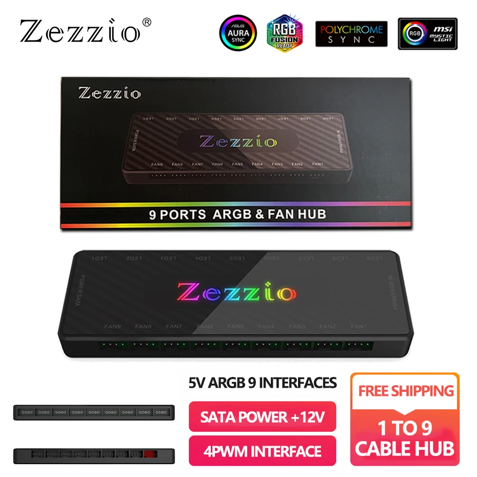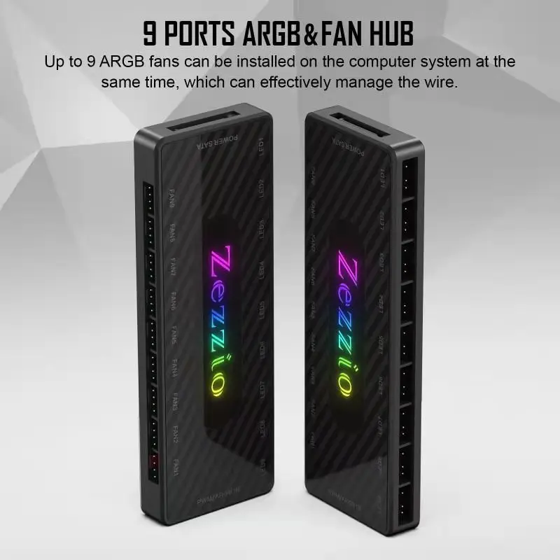 Comprar Zezzio-concentrador de Cable ARGB/PWM, 9 Interfaces, 12V, SATA Power, 9 puertos, ARGB Fan Hub Light Controller, accesorio de refrigeración