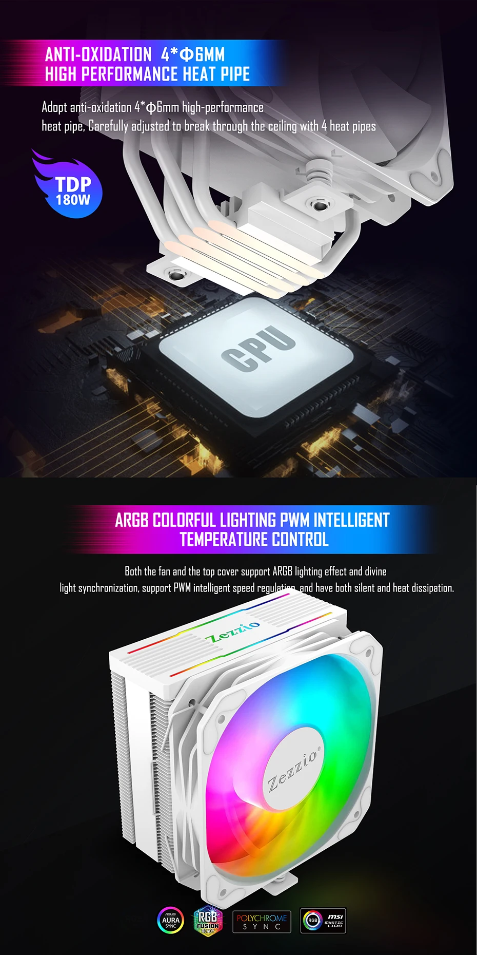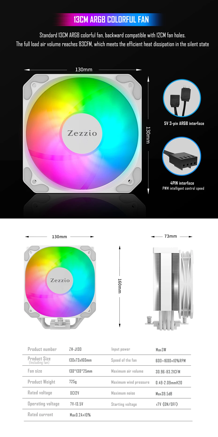 Comprar Zezzio-enfriador de CPU de 4 tubos de calor, 5V, 3 pines, ARGB, torre de ventilador de refrigeración, disipador de calor para Intel LGA1700 115X 1200 AMD AM4, Blanco/Negro, ZH-J130