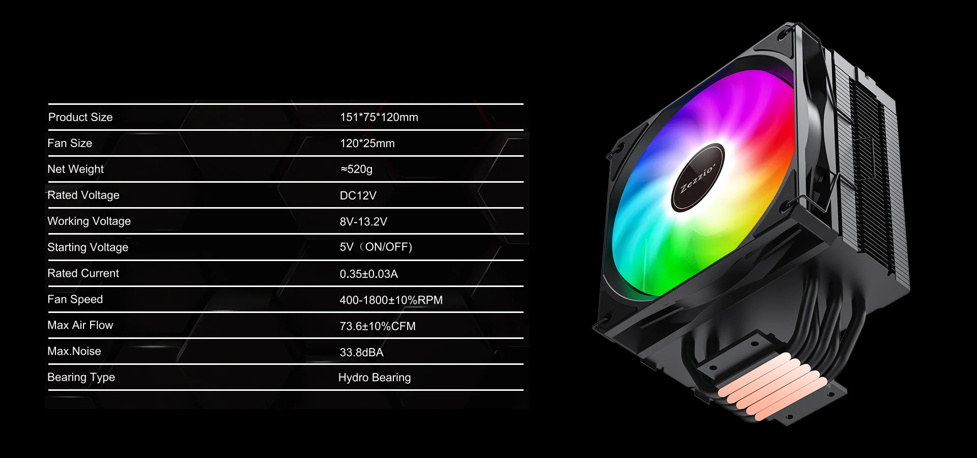 Comprar Zezzio-enfriador de CPU ZH-500K, 5 tubos de calor, radiador 5V, 3 pines, ARGB, PWM, ventilador de refrigeración, Intel LGA1700, 115X, 1200, 20XX, AMD AM5, AM4