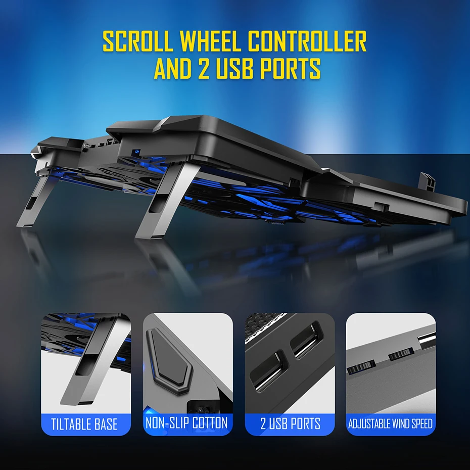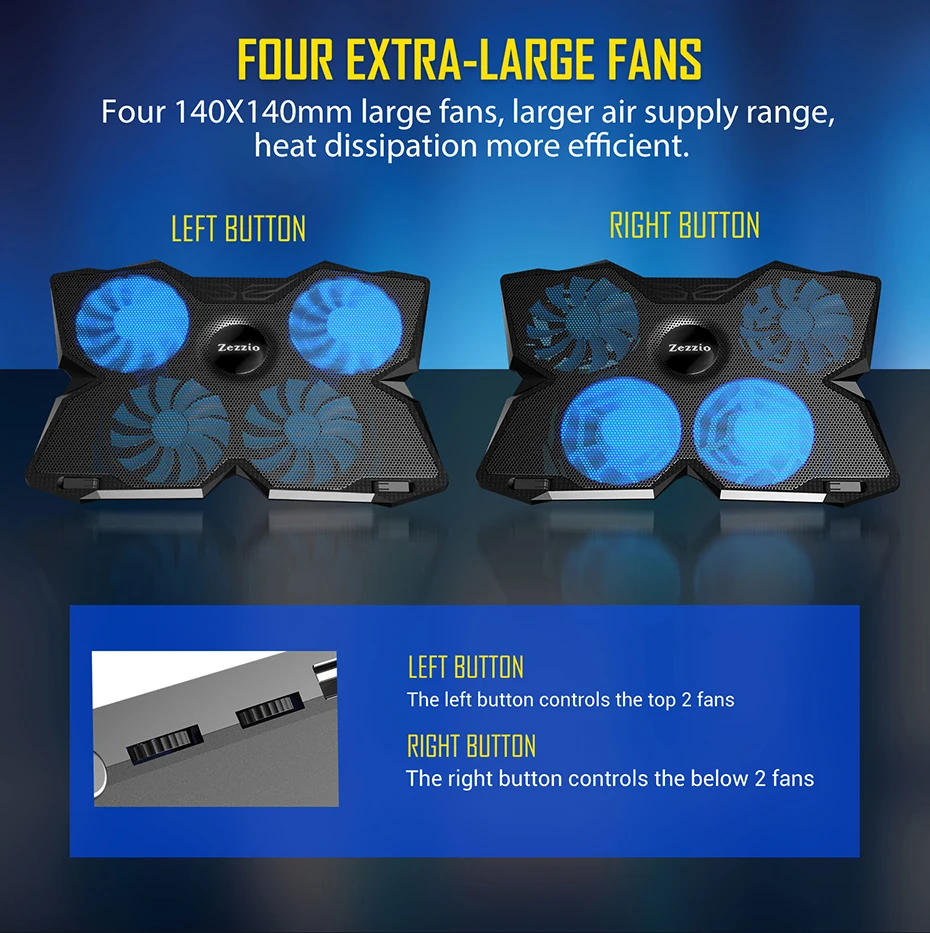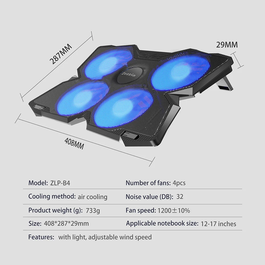 Comprar Zezzio-enfriador de ordenador portátil ZLP-B4, 4 ventiladores silenciosos y fuertes, puertos USB duales para Notebook de 12 a 17 pulgadas, soporte de refrigeración