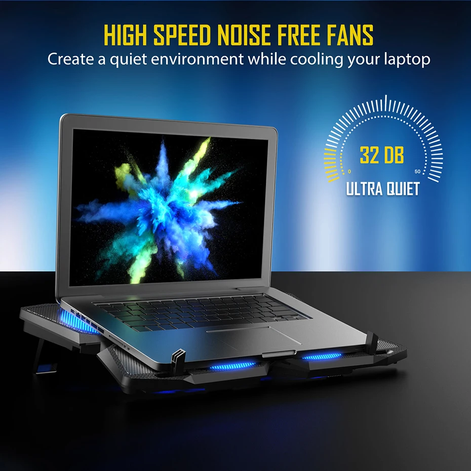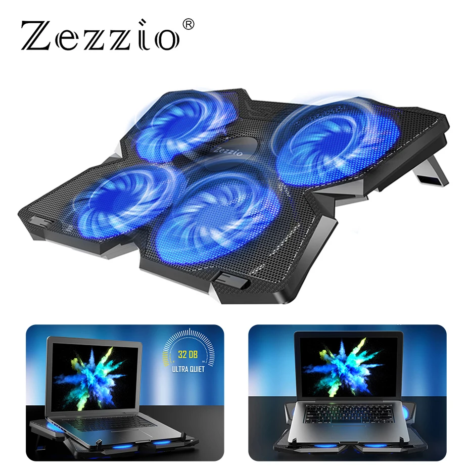 Comprar Zezzio-enfriador de ordenador portátil ZLP-B4, 4 ventiladores silenciosos y fuertes, puertos USB duales para Notebook de 12 a 17 pulgadas, soporte de refrigeración