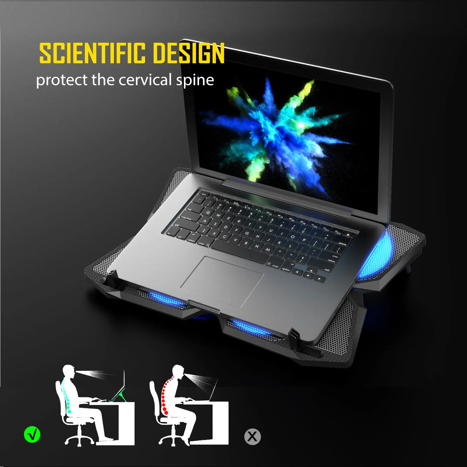 · Diseño científico: doble deflector antideslizante para evitar el deslizamiento del portátil, y se puede plegar/ocultar. El soporte se puede ajustar para satisfacer sus diferentes hábitos de uso y proteger su columna cervical y lumbar.