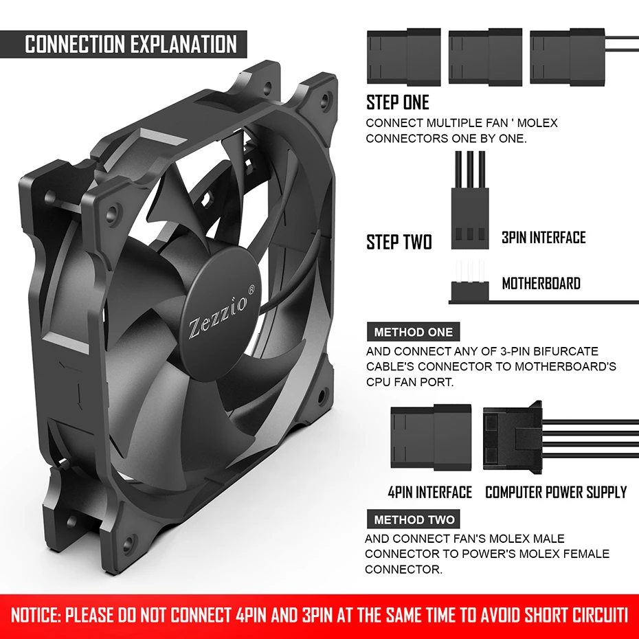Comprar Zezzio-ventilador de refrigeración ZA-120 3 en 1 para carcasa de ordenador, radiador Ultra silencioso de 12cm, CPU de 3 pines y Puerto Molex de 120mm