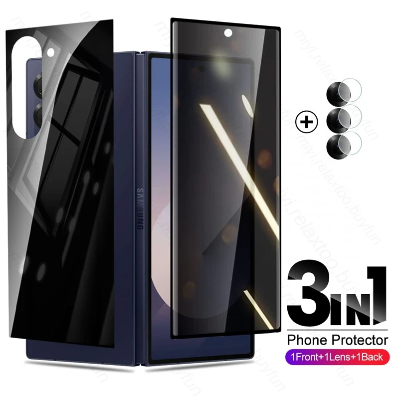 ZFold6 Glass 3In1 Protector de pantalla de vidrio templado de privacidad para Samsung Galaxy Z Fold6 5G Camera Glass Sumsung Fold 6 Z6 Back Film