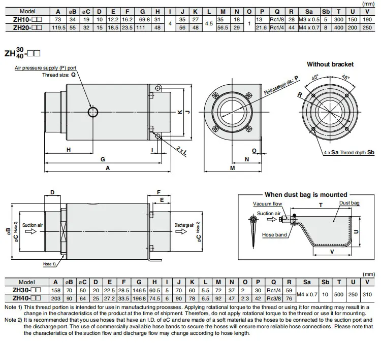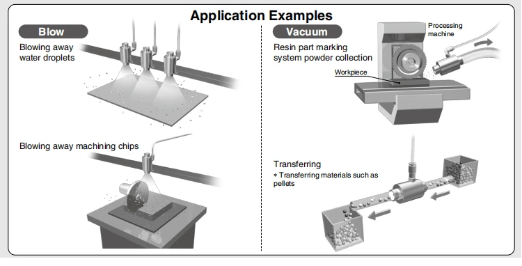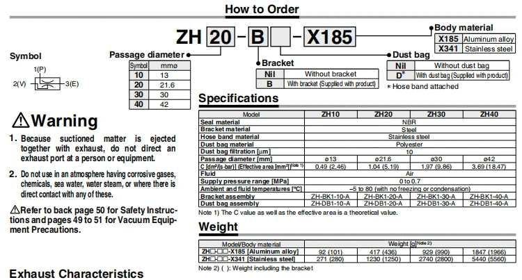 ZH10 20 30 40-B-X185 ZH19 25 32-X187 Boquilla de gran flujo Alimentación neumática Succión Transporte al vacío Generador amplificador