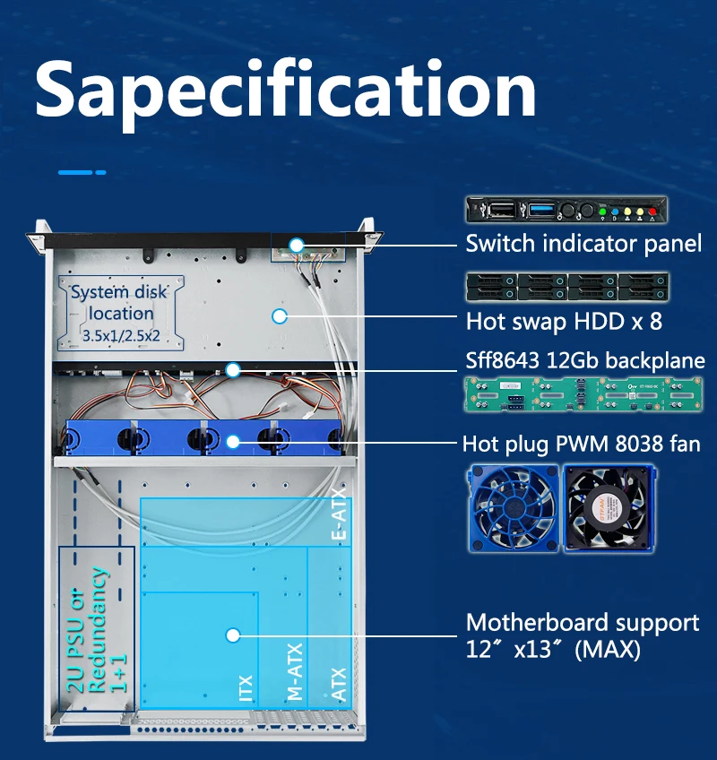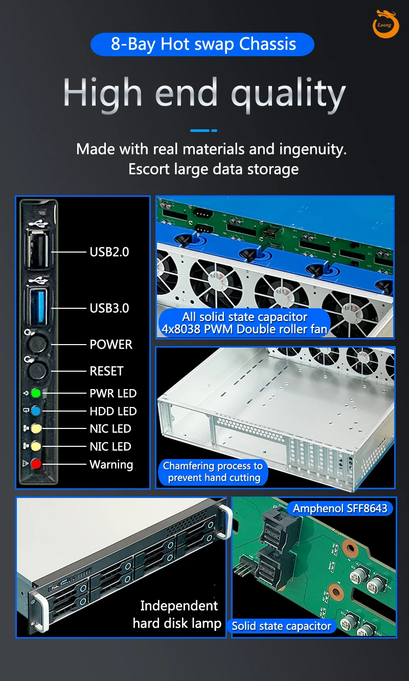 Comprar ZhenLoong LT8 2U chasis de servidor de 8 compartimentos unidad de disco duro estante de almacenamiento de intercambio en caliente caja NAS con Mini SAS SATA 12Gb Backbplane SFF8643