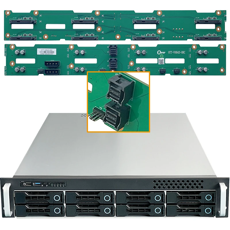 Comprar ZhenLoong LT8 2U chasis de servidor de 8 compartimentos unidad de disco duro estante de almacenamiento de intercambio en caliente caja NAS con Mini SAS SATA 12Gb Backbplane SFF8643