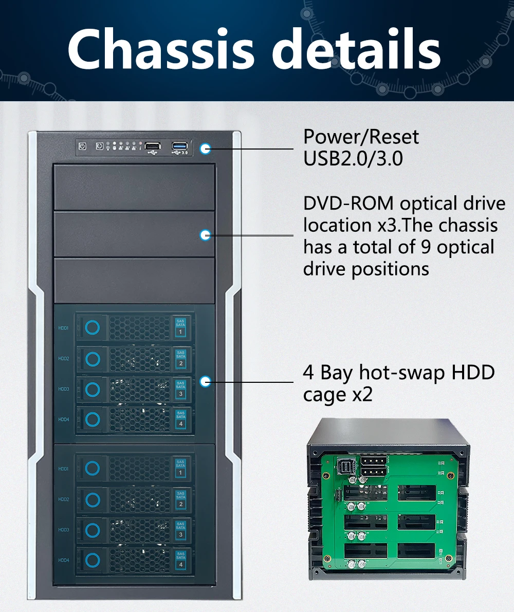 Soporte de disco duro8 SAS/SATA de 3,5"/2,5"