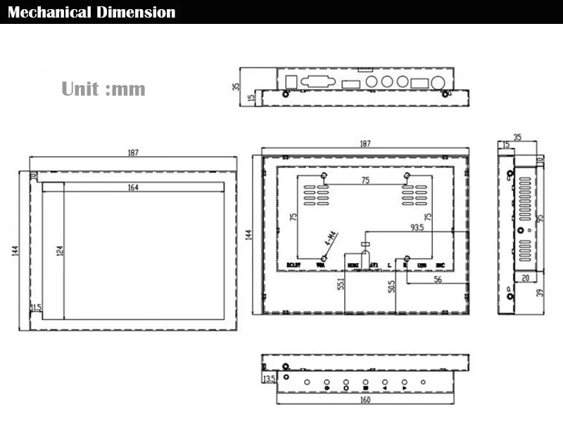 Las especificaciones del monitor industrial HD de 8 pulgadas 4:3 1024*768Marca