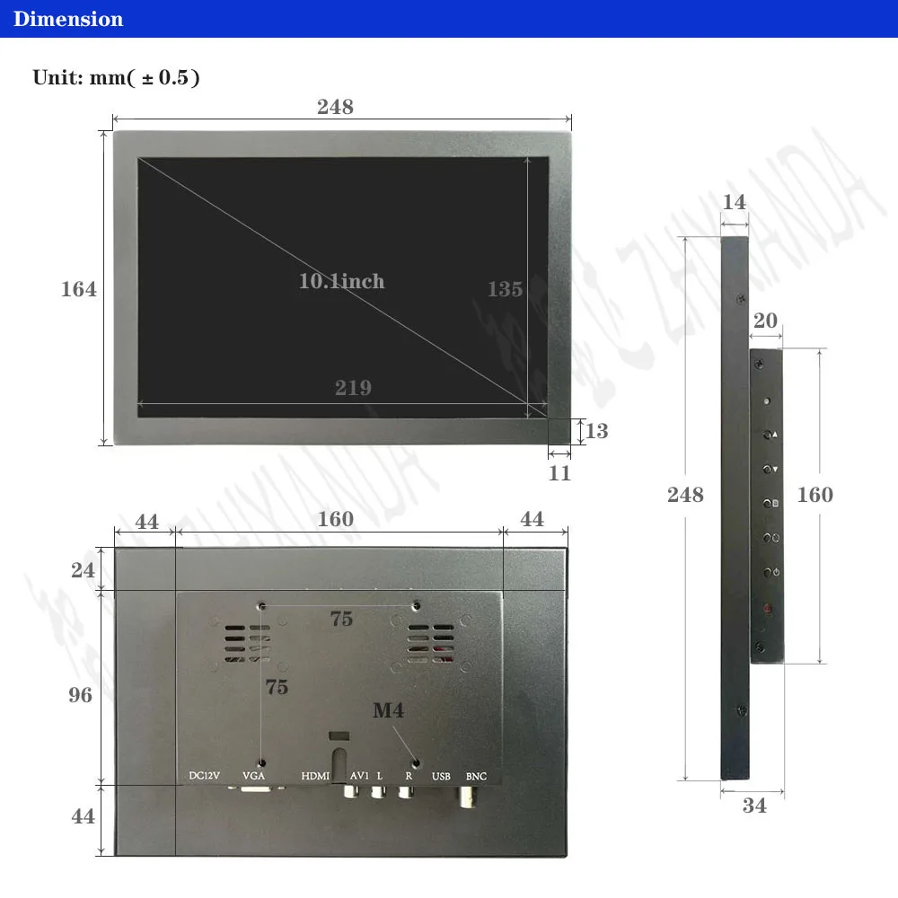 ZHIXIANDA de alta calidad 10,1 pulgadas FHD 1280*800 1920*1200 caja de metal con HDMI VGA USB AV monitor industrial de Marco abierto de entrada
