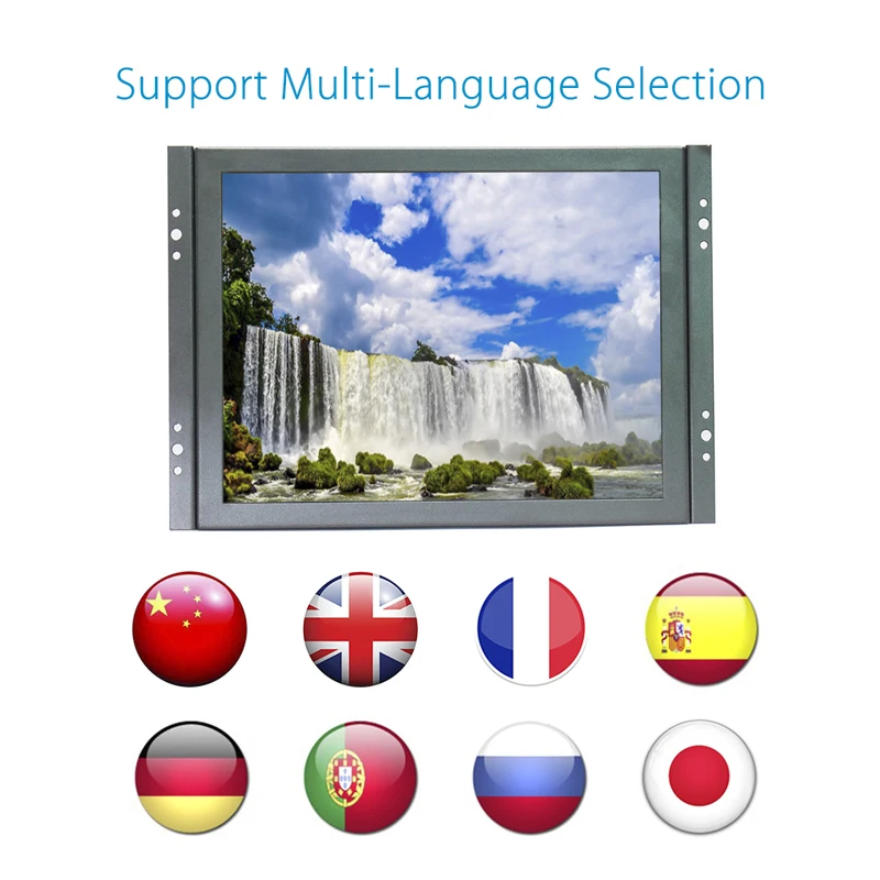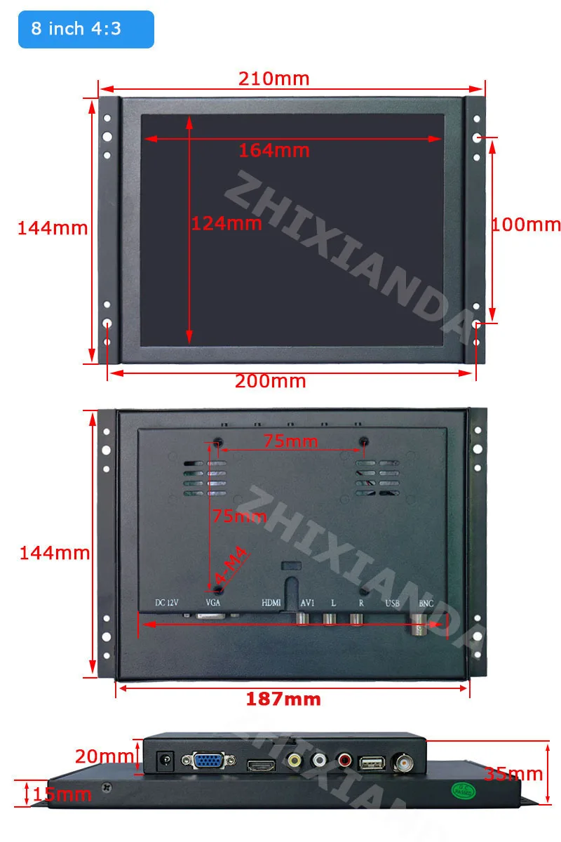 ZHIXIANDA Monitor de Marco abierto de montaje en pared integrado de 8 pulgadas Pantalla TFT CCTV LCD 1024*768 con interfaz múltiple y altavoces